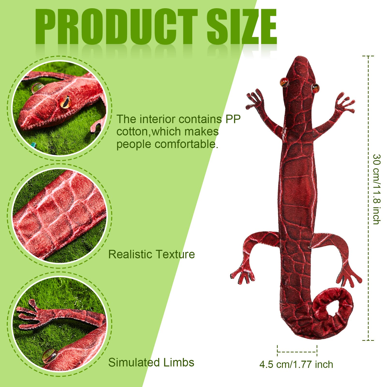 Features: Bring you happiness: You can take these Halloween slap bracelets out to amuse your friend on festival, will bring much happiness to you, and make you closer. Considerate presents: Our Halloween snap bracelets can be sent to your friend, to wear them together, making you become the focus of the party. Specifications: Material: polyesterColor: as shown in the pictureSize: approx. 29 cm/ 11.42 inchesPackage includes: 10 x Lizard snap braceletsNote: Manual measurement, please allow slight errors on size. The color may exist slight difference due to different screen displays.