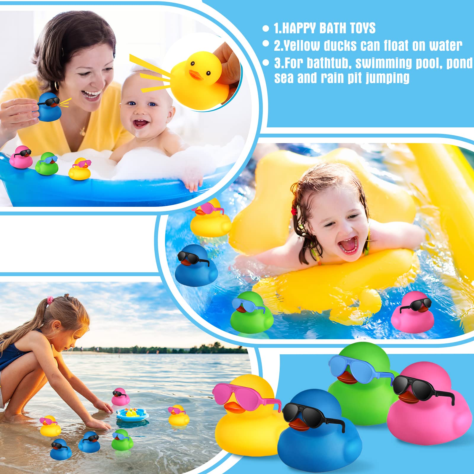 Features: The Baby Tub Toys Also Can Be Regarded As Interesting Decorations For Birthday Party, Graduation, Wedding, Pool Party, Beach Party, Christmas And So On, Adding Festive Atmosphere. The Mini Rubber Duck Can Develop Boys And Girls' Interests In Exploration, Nice Gifts For Relative, Family, Friend, Classmate, Student, Etc., Interesting Classroom Prizes. Specifications: Material: Rubber And More Color: As Shown Size: 3 X 2 Inch Quantity: 96 Pieces In Total Package Includes: 48 X Bath Duck 48 X Mini Sunglasses Notes: Manual Measurement, Please Allow Slight Errors On Size. The Color May Exist A Slight Difference Due To Different Screen Displays. Suit To People Over 12 Years Old. Small Items Are Included, Please Keep Children Under 3 Years Old Away From Them.