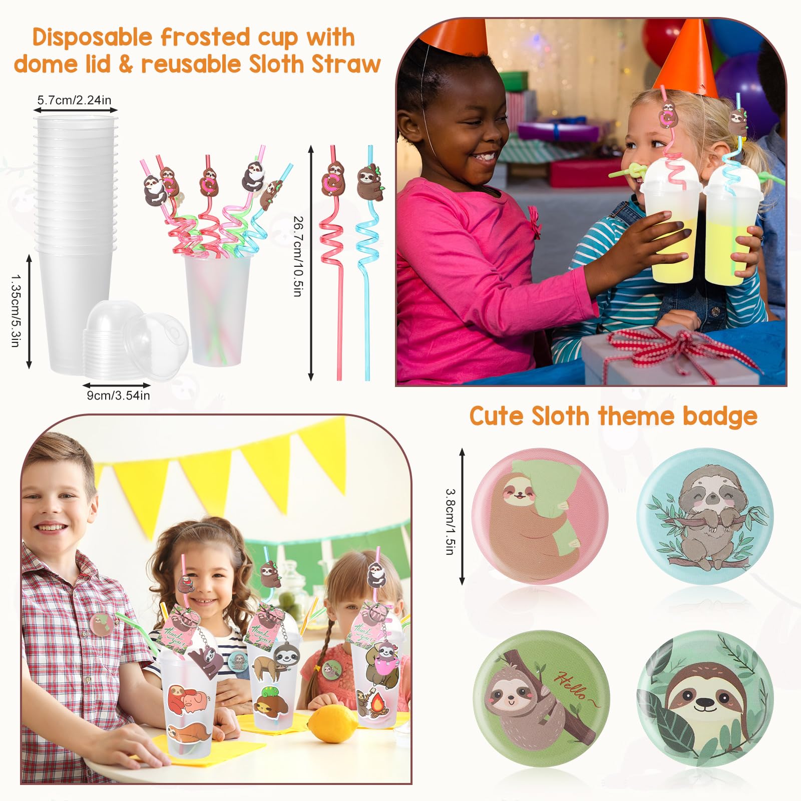 Features: Each gift cup measures approximately 5.3 x 3.54 inches with a capacity of 17 oz or 500 ml. The other sloth birthday gifts have been designed with an ideal size to fit within the cup neatly, avoiding any hazardous elements. Our sloth themed gifts pack adds happiness to the celebration, generating endless fun. Sure to bring fun and laughter, these items serve as brilliant accessories for a host of events and nice keepsakes to remember the good times by. Specifications: Material: PP plastic, silicone, PVC self adhesive, alloy, Kraft paperColor: as the picture shownSize: gift cup: 5.3 x 3.54 inchesCapacity: 17 oz/ 500 mlPackage includes: 16 x Sloth keychains16 x Sloth silicone rings16 x Sloth silicone bracelets16 x Sloth necklaces16 x Sloth badges16 x Sloth stamps16 x Thank you tags16 x Gift cups with lids16 x Straws 50 x cartoon sloth stickers1 Pack of twist ties (include 50 twist ties)Notes: Manual measurement, please allow slight errors on size. The color may exist a slight difference due to different screen displays. Please note that our products are suitable for ages 14+.