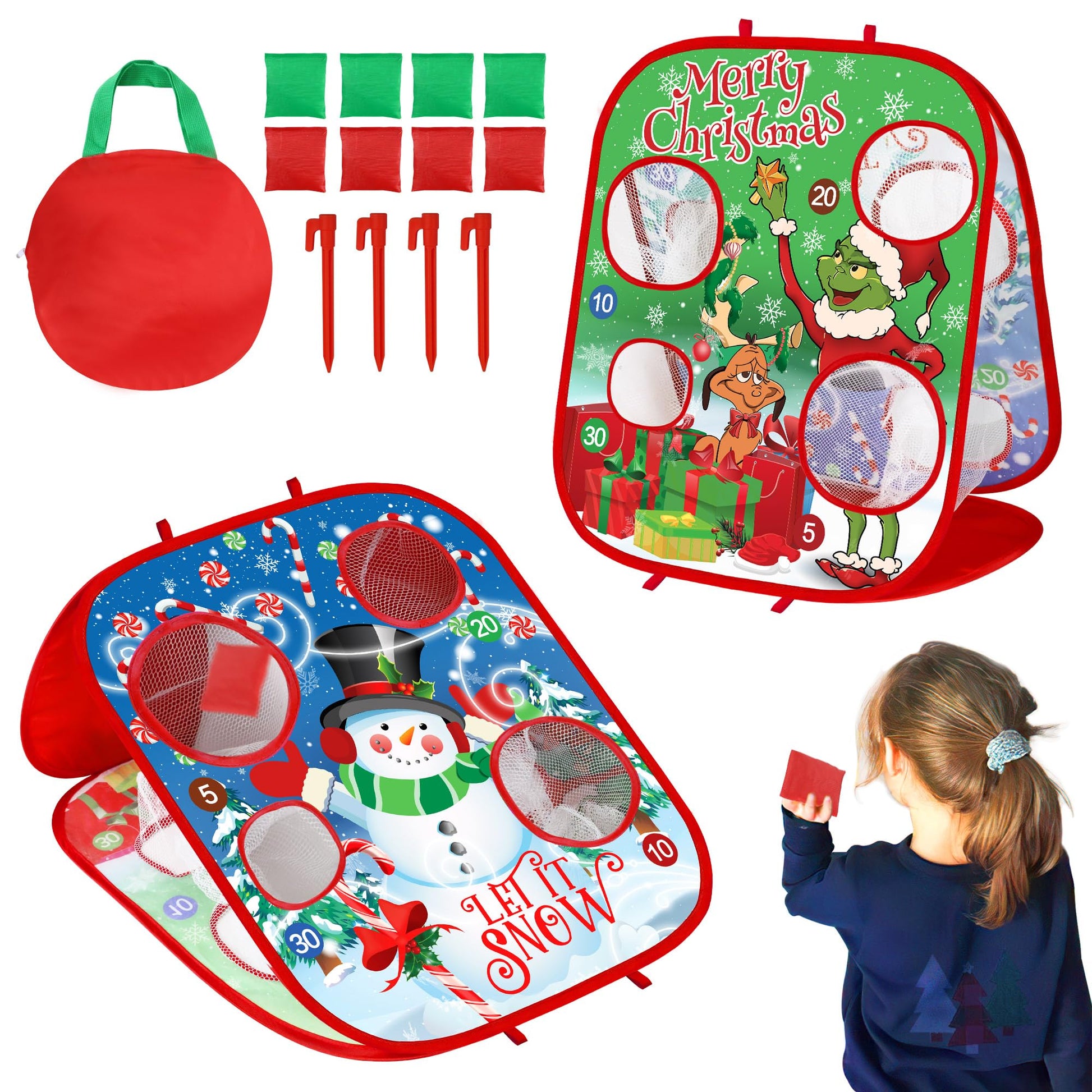 Christmas Bean Bag Toss Games For Kids, Christmas Party Games Double-Sided Collapsible Cornhole Board, Carnival Toys Gifts For B