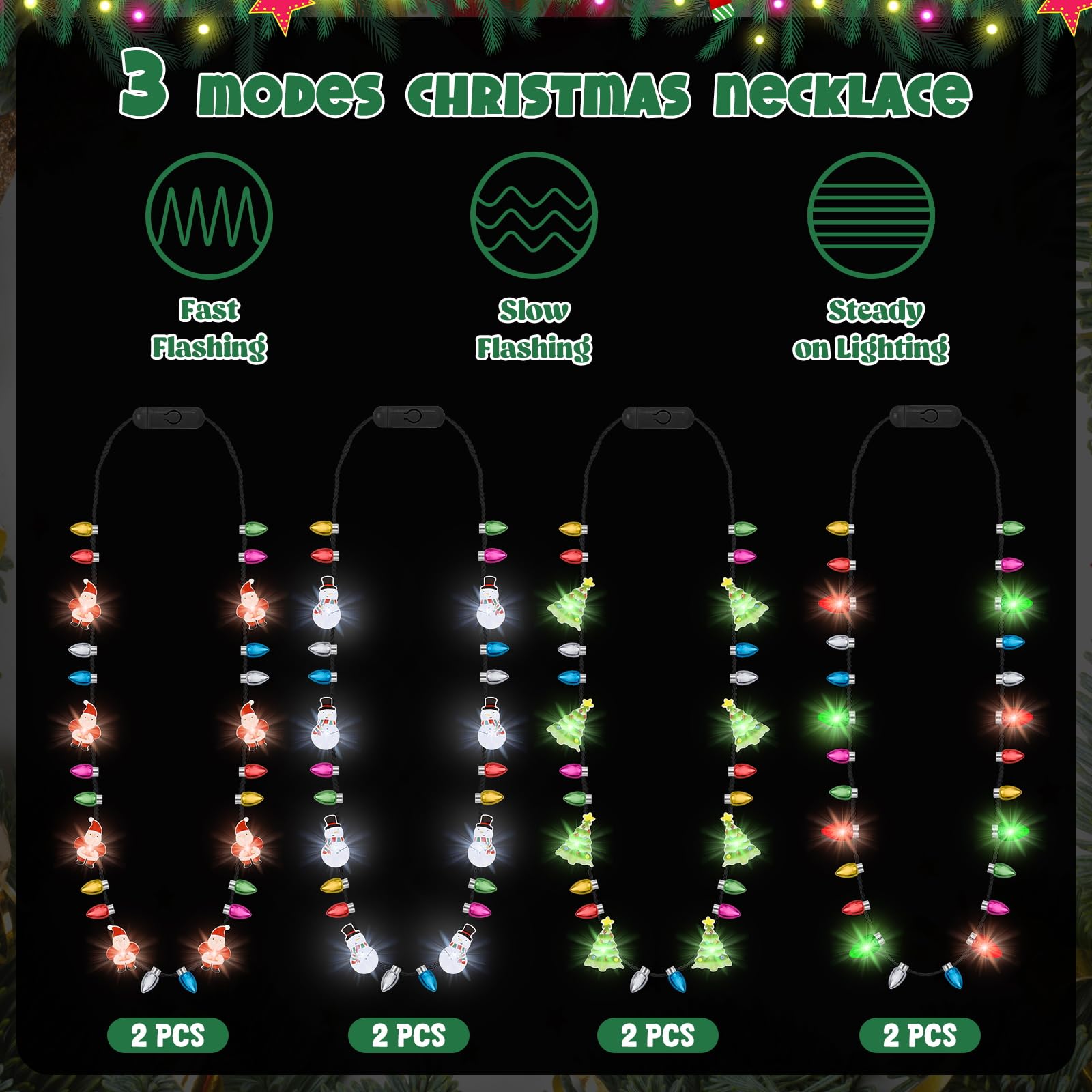 Christmas Party Favors, 8PCS Christmas Light Necklace, Christmas Accessories Colorful Bulbs, 3 Modes Light Up Christmas Necklace
