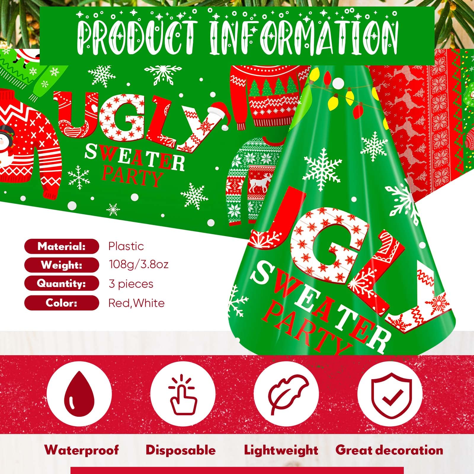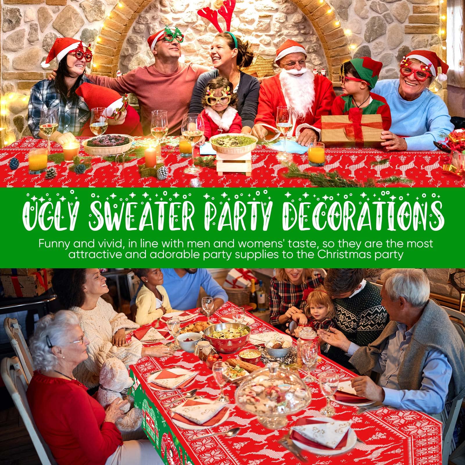 Christmas Plastic Tablecloth Christmas Table Cover Set Ugly and Sweater Party Tablecloth Xmas Sweater Table Cover Snowflake for