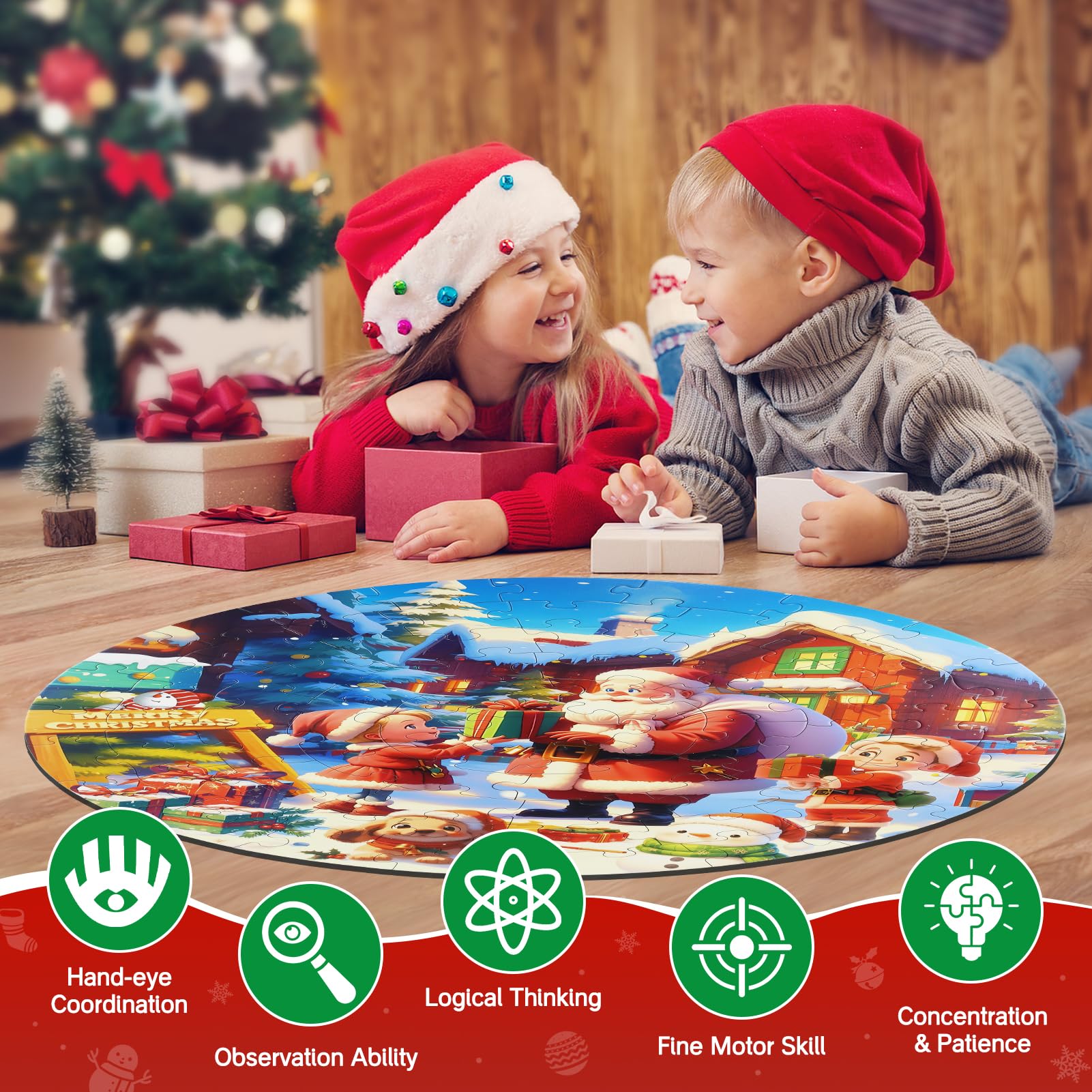 - Q: What age group is this Christmas puzzle suitable for? A: This Christmas puzzle is designed for children aged 3 to 8 years, making it an excellent educational toy for kids ages 4-6.