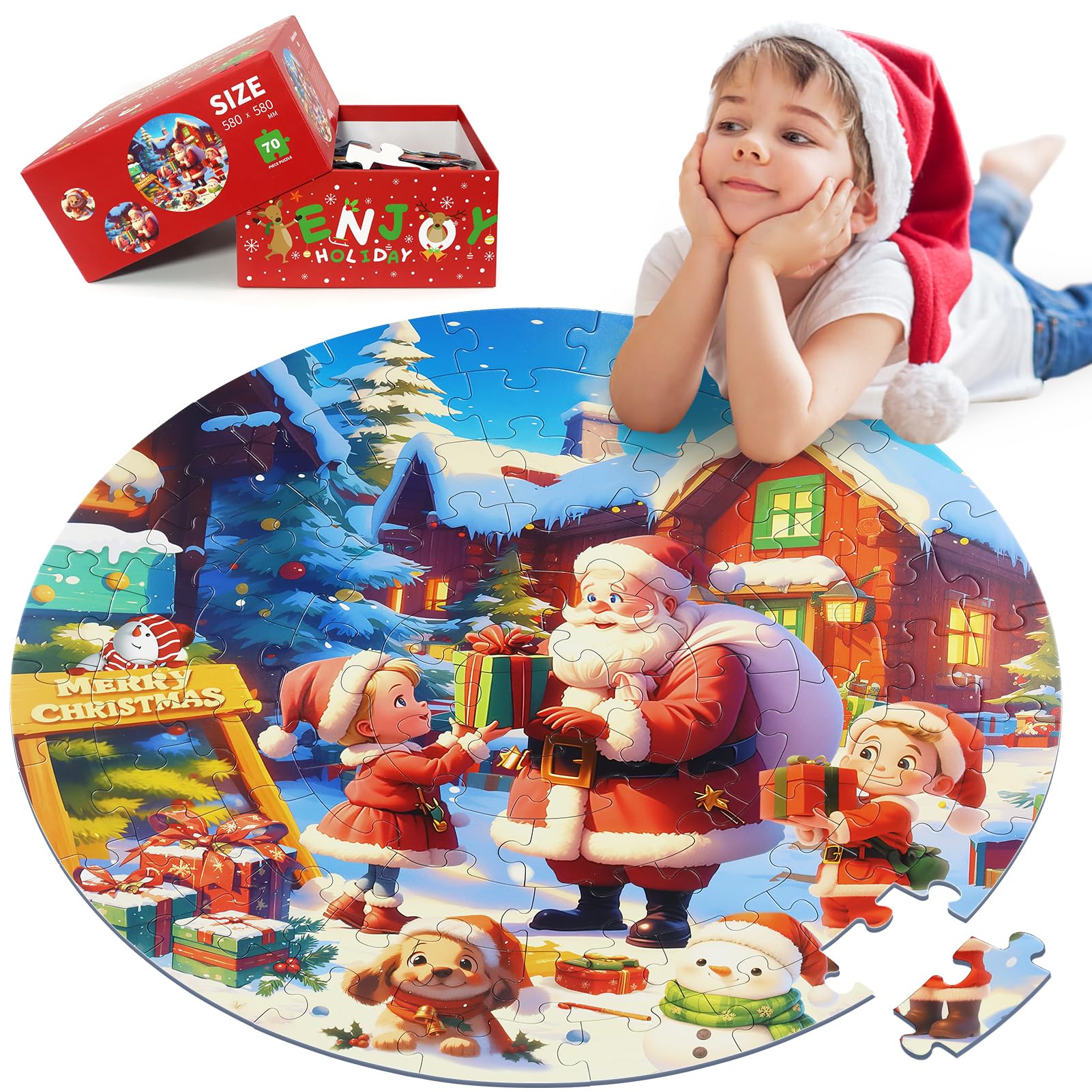 Christmas Puzzles For Kids Ages 4-6, Kids Puzzles With Santa Claus & Snowman,70 Piece Round Large Floor Puzzles For Kids Ages 3
