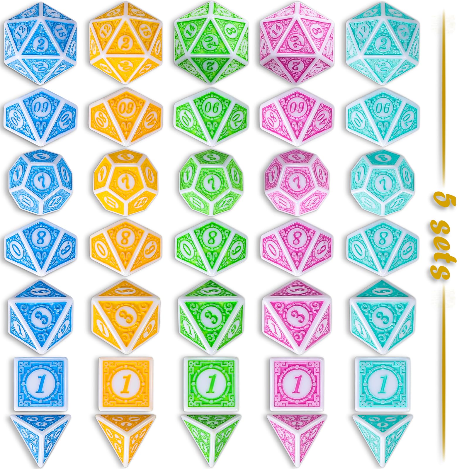 View compareCiaraQ DND Dice with 5 Pouches, 5 Sets of Retro Polyhedral Dice for MTG D&D Board Games, 35 Pieces Role Playing Dice
