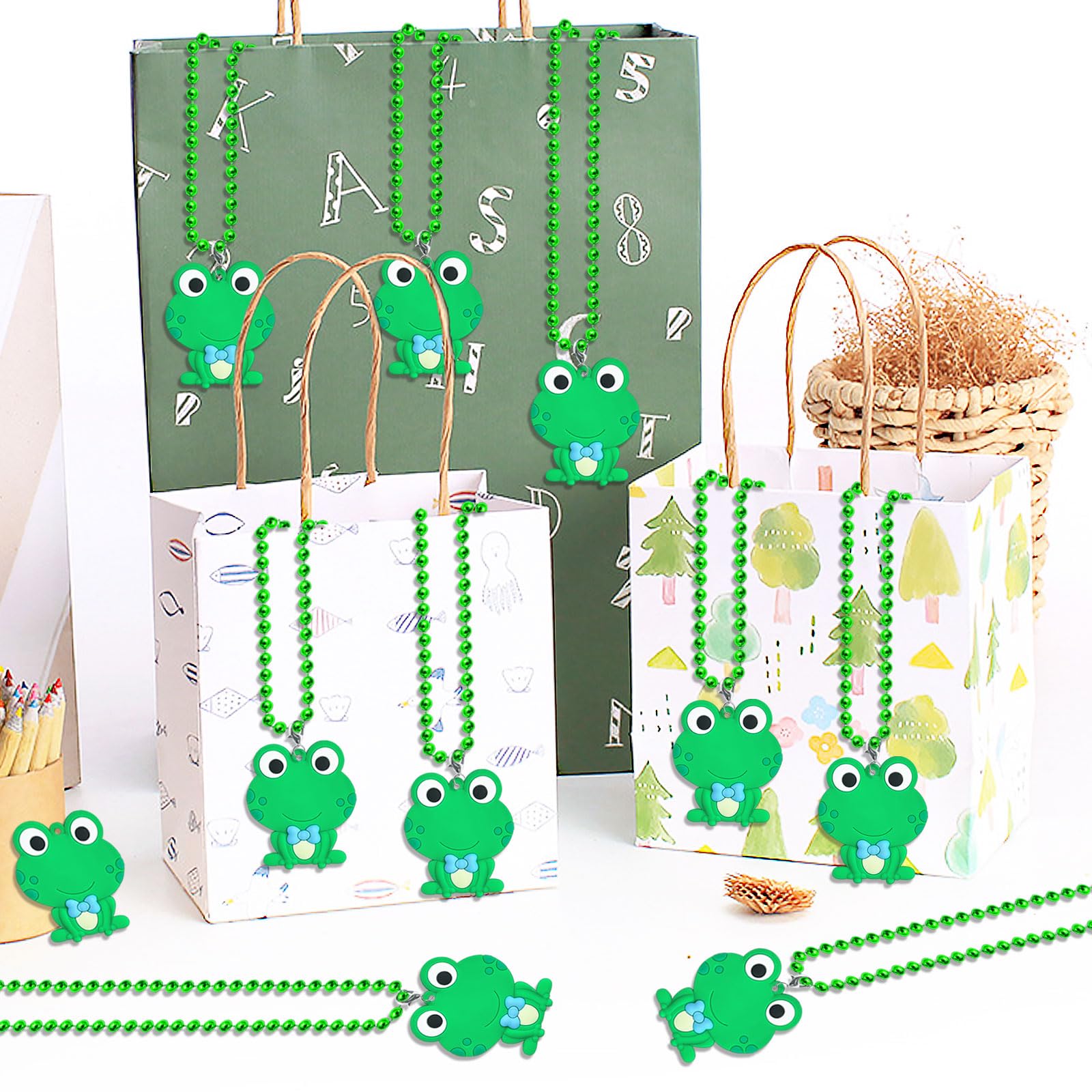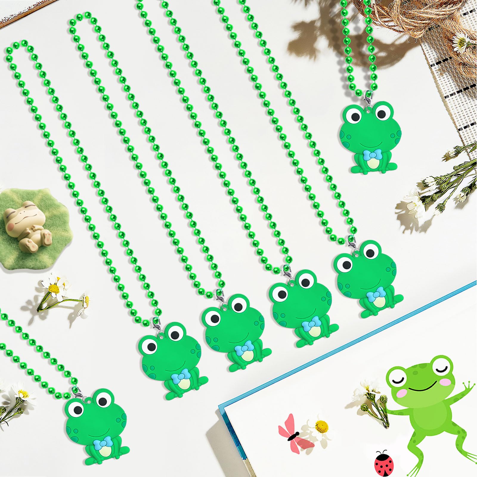 CiciBear 24 Pack Frog Necklace Party Favors with Mardi Gras Beads for Green Frog Girls Baby Shower First Birthday Reptile Campin