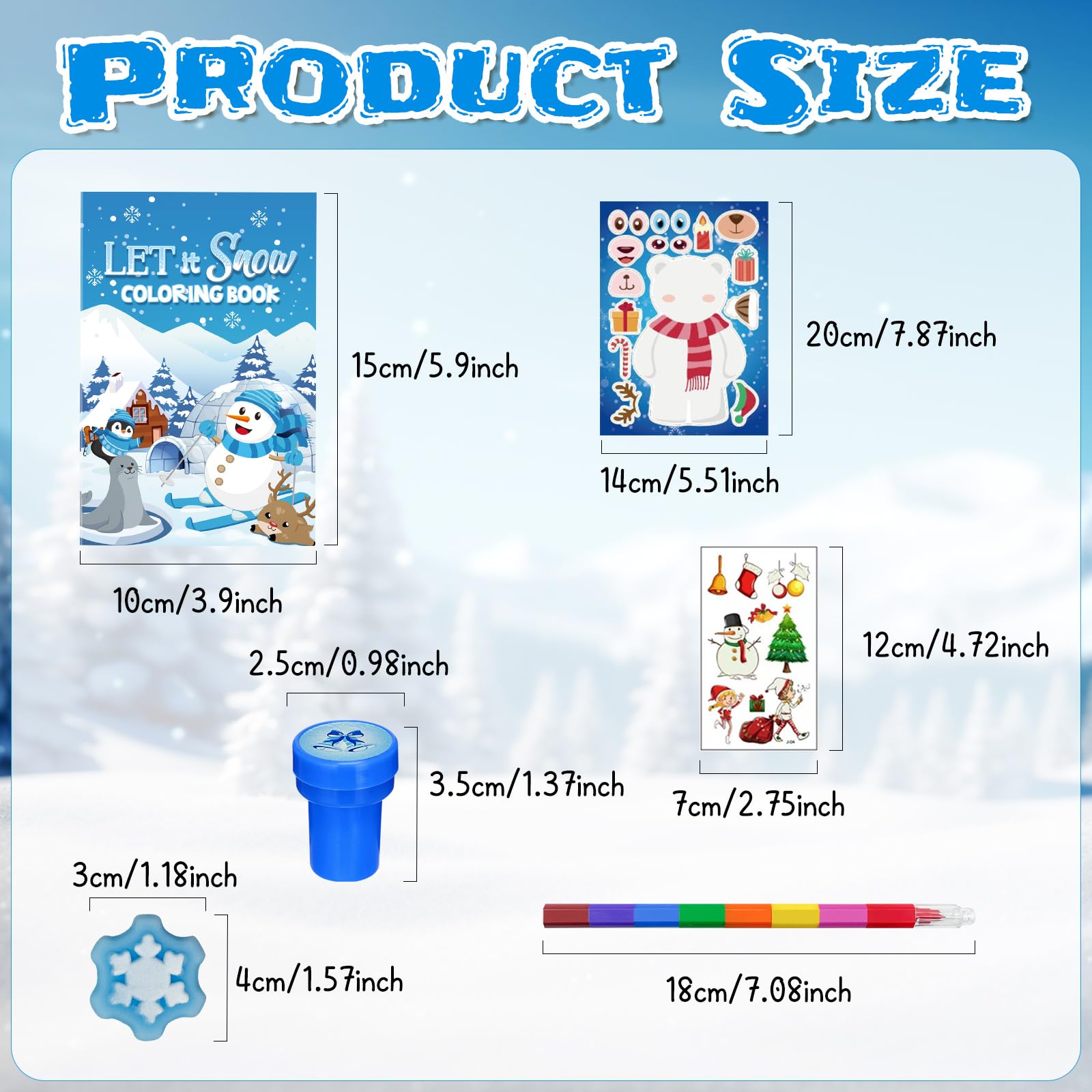 Features: Ingenious winter Christmas activity set class reward prizes kit: A way to celebrate winer holiday and share the fun with kids, students, friends and classmates. Suitable winter class gifts: As a teacher, you can give the winter prizes rewards bulk to each student in the class as a winter holiday present. As a student, you can exchange winter Chirstmas activity stickers coloring books set as a winter gift and prepare all the thoughtful gifts at once. Specifications: Material: paper, plastic Color: as pictures shown Package includes: 12 x Coloring Books 12 x Rainbow Stacking Crayons 12 x Stampers 12 x DIY Art Craft Stickers 12 x Tattoo Stickers 12 x Winter animals Squishy Pinch Notes: Colors may vary slightly due to different screen displays. Manual measurement, please allow for a slight error in the size.