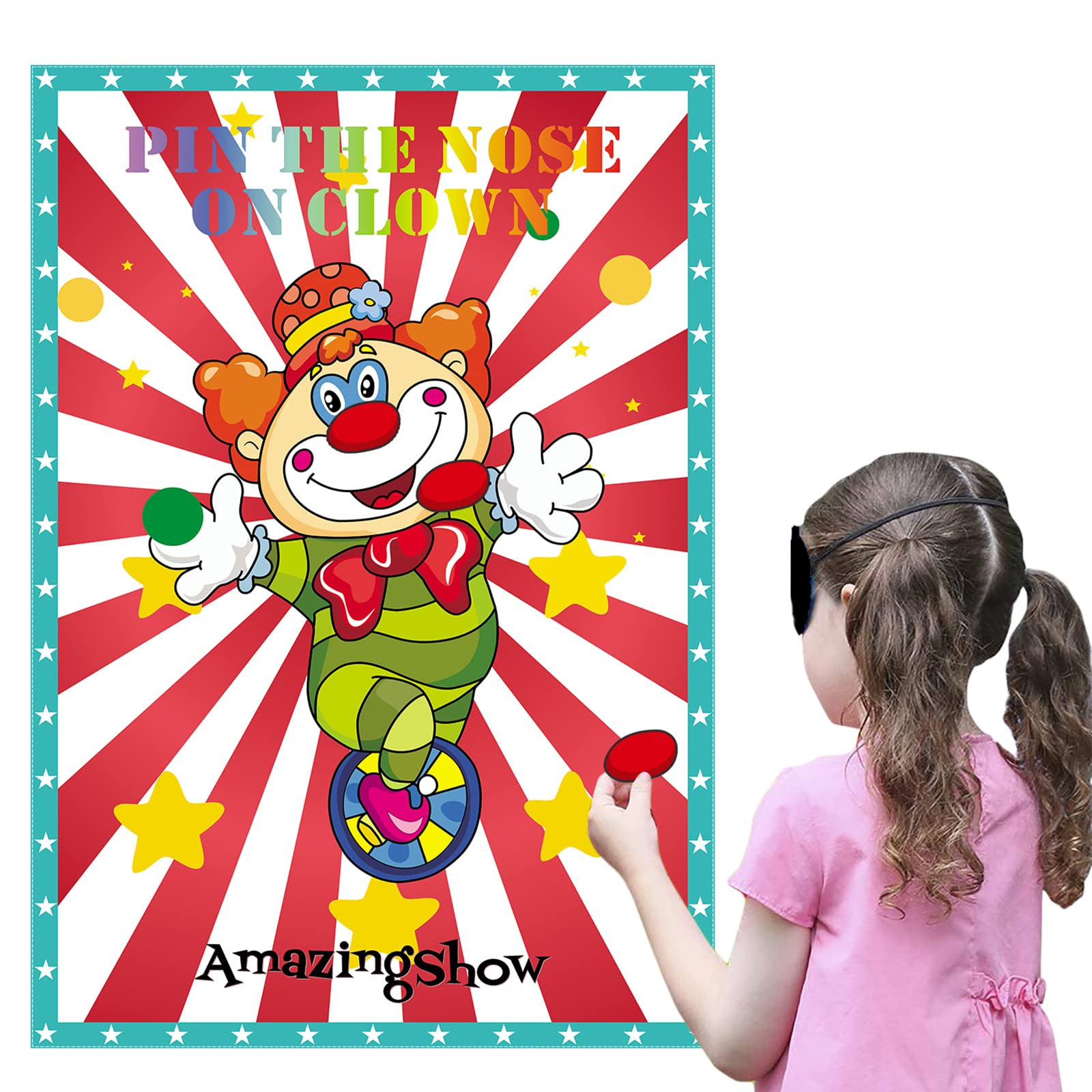 Circus Party Supplies,Pin The Noses On The Clown,Circus Clown Party Games Decoration,Large Poster With 24Pcs Nose Stickers For K