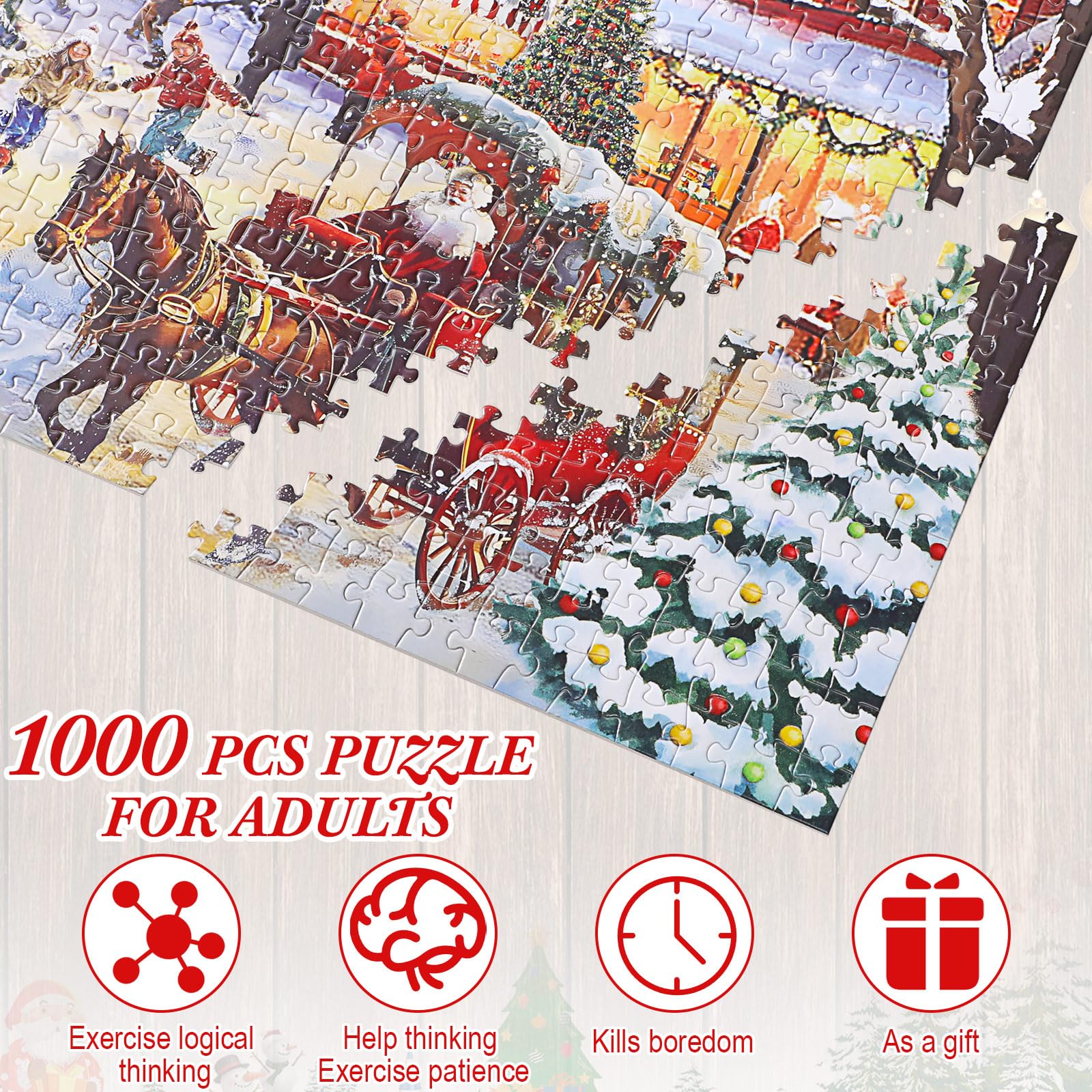 Features: Decorative and Functional: Carrying a multi purpose utilization our Christmas jigsaw puzzles can be framed and showcased as a lovely wall decoration. Please note that the frame is not included and should be purchased separately. Complete the puzzle and you will be rewarded with a beautiful christmas decoration that will add a touch of vibrant warmth to your home decor Gift option: You can give this christmas puzzles to your friends or loved ones as a birthday party or holiday gift reducing stress while releasing fun suitable for all ages Specifications: Material: paper Color: multi color Size: 27.6 x 19.7 inches/ 70 x 50 cm Package includes: 1000 Pieces Christmas puzzles Notes: Manual measurement please allow slight errors on size. The color may exist a slight difference due to different screen displays.