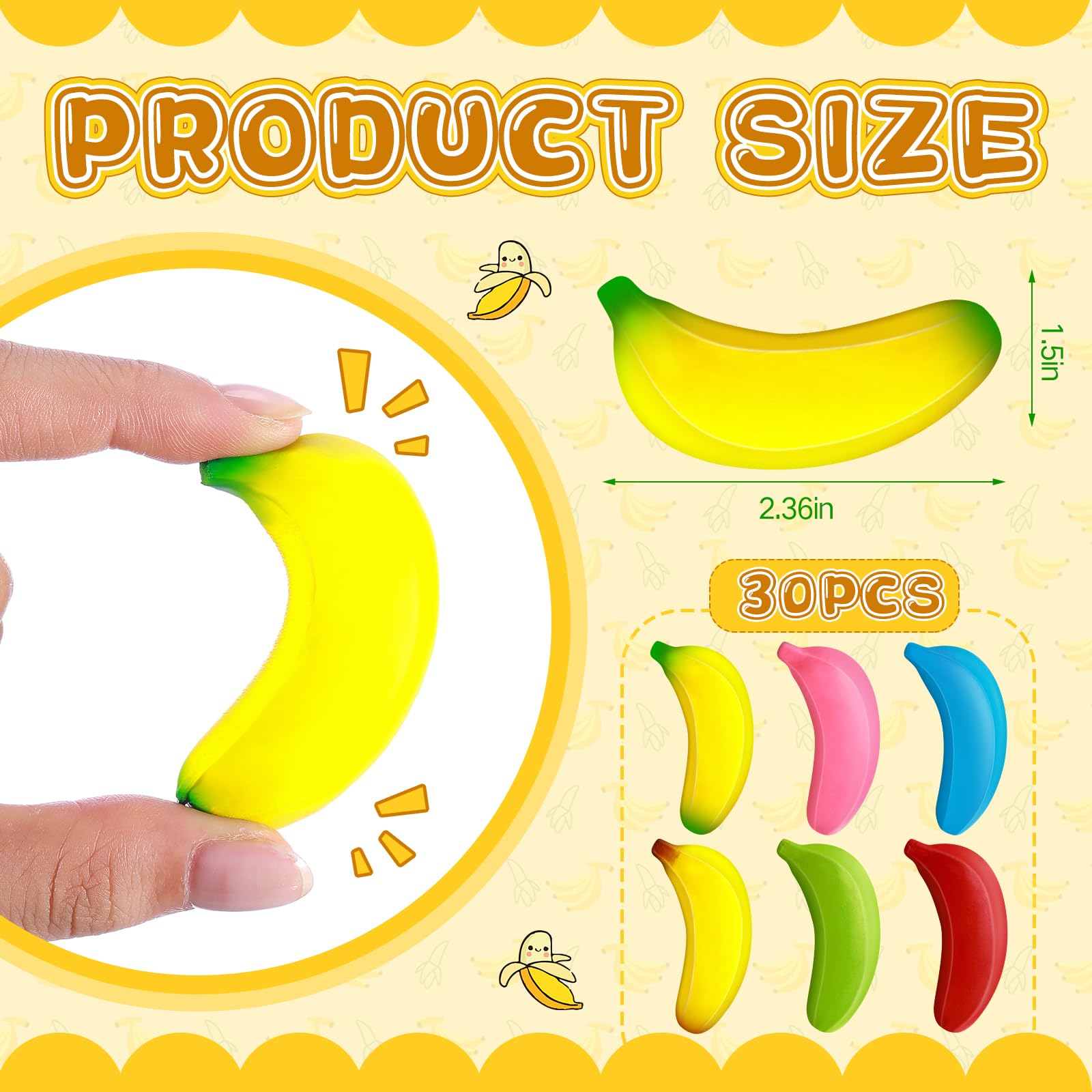 Civaner 30 Pcs Banana Stress Toys Stretchy Banana Stress Relief Toys Fidget Anxiety Relief Squeeze Balls Bulk Mini Party Favors Tiny Squeeze Party Supplies For Kids Adults(Multicolor)