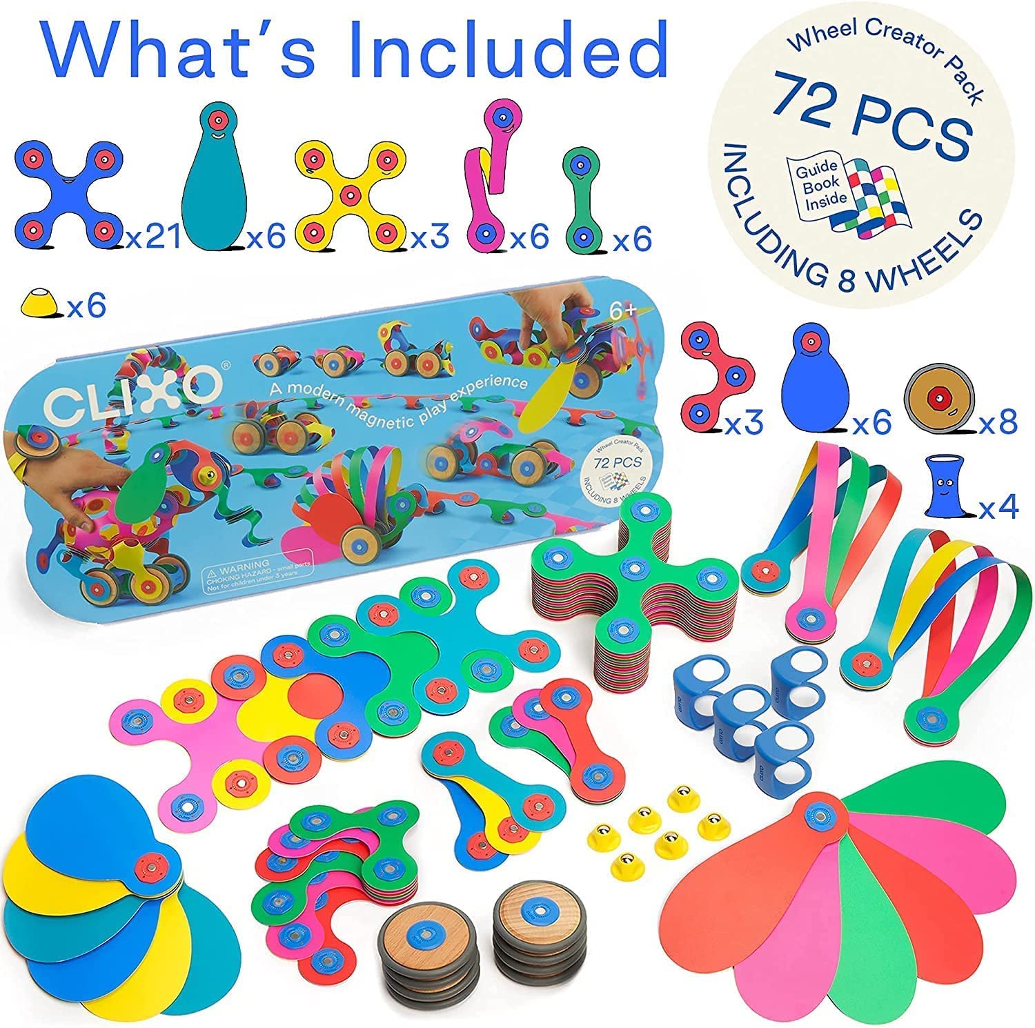 Clixo Wheel Creator Pack, 72 Pieces Pack - Construction Magnet Toy. Flexible, Creative-Boosting Magnetic Building Tiles. Educator-Approved Design For Hours Of Stem Play. Multisensory Toy. Age 4-99.