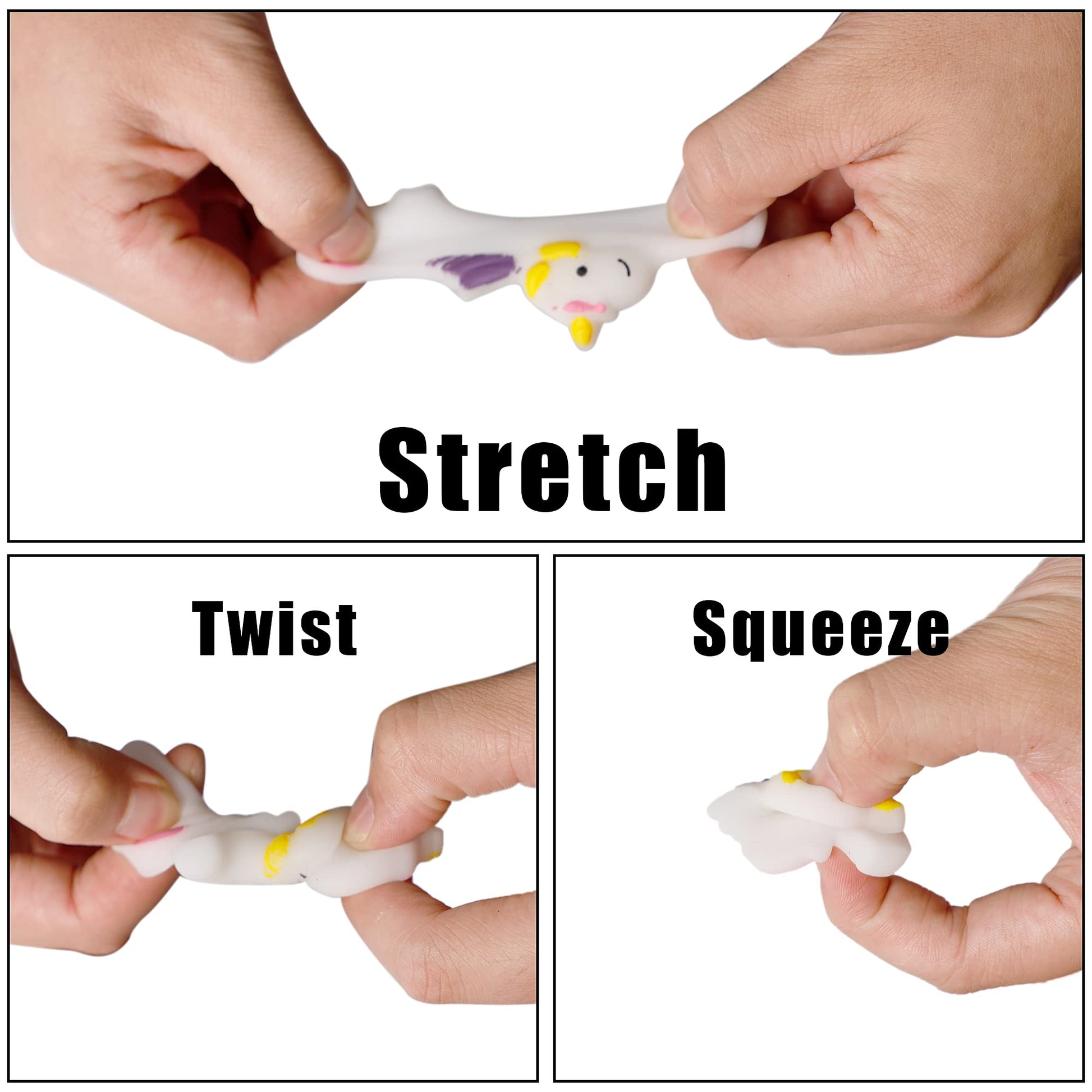Package Situation: Comes with 24 pcs unicorn squishy toys including 12 different kinds of designs in 4 colors white pink purple and blue. Each size is different varies from 1.5 to 2 high individually packaged. | Adorable Design: The squishy toys are designed as various styles of unicorns such like flying horse and angles. Kids especially girls will gravitate to these brightly colored toys. | Surprising Gifts: Super kawaii mini squishies perfect for goody bag fillers Easter Egg fillers birthday party favors for kids Thanksgiving gifts Christmas gifts class prizes treasure box toys and etc. | Safe & Washable: Our mochi toys are made of enhanced materials which is safe and non-toxic. They can be washed with water directly when they are dirty. | Relieve Stress: These mini mochi toys touch soft and they are easy to pinch suitable for kids and mature-themeds to relieve stress and increase blood circulation of hands.