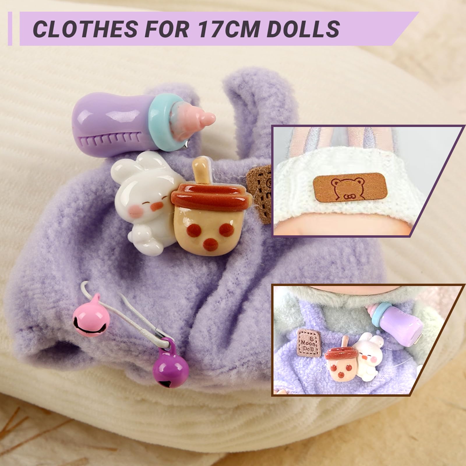 View compareClothes for 17cm Dolls(NO Doll) Stylish Kawaii Purple Outfit Set with Hat Romper & Camera Backpack Accessories Suit Cute Clothes for Dress Up Unique Style