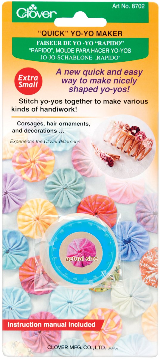- Q: What is the Clover Round Extra Small Yo-Yo Maker used for? A: The Clover Round Extra Small Yo-Yo Maker is designed for quickly creating beautifully shaped yo-yos that can be stitched together for various fabric crafts, including embellishments for covers, table runners, and bags.