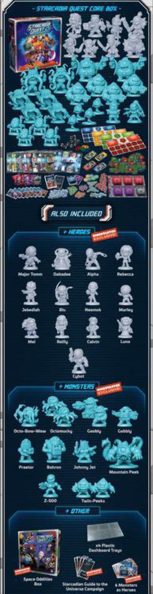 Starcadia Quest Is The Sci-Fi Stand-Alone Game In The Arcadia Quest Family. The Game Employs The Same Player Vs. Player Vs. Enemy Mechanic Of The Originals, But With New Rules And Themes That Are Out Of This World. Players Take On The Role Of Crews Of Two Heroes As They Must Fight Against The Evil Minions Of Supreme Commander Thorne. Over The Course Of A Branching Campaign, Players Will Fight Alien Monsters And Each Other, Find New Gear, Explore The Far Reaches Of Space, And Do Their Best To Not Become Alien Chow