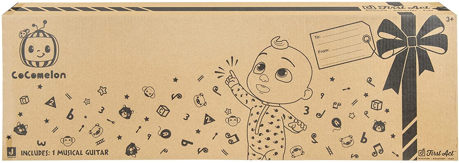 Bring your toddlers love for music to an adorable new level with the First Act CoComelon Musical Guitar! Inspired by the popular and educational series, CoComelon, the First Act Musical Guitar will have your little one bopping to one of CoComelons hit songs from the show, Finger Family! This childrens guitar is easy and ready to play right out of the box. Press the music button to play a clip of the song and strum along! The CoComelon Musical Guitar has fun and vibrant graphics, a feature that is sure to catch your childs attention as they follow along to the music! With CoComelons Musical Guitar, your child can explore music and even improve necessary skills like fine motor skills, dexterity, and more! Turn play time up a notch with the CoComelon Musical Guitar by First Act!