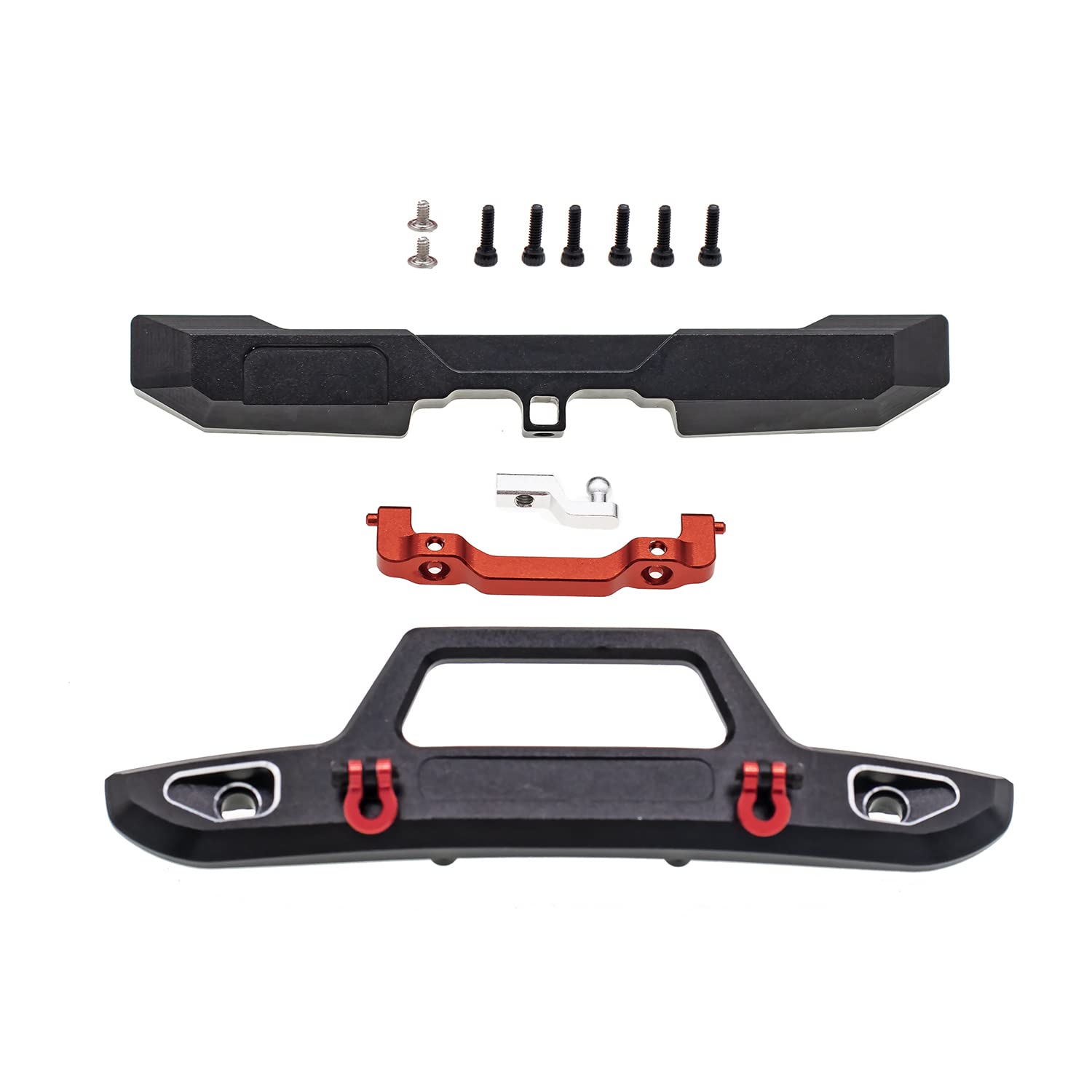 Compatible with:AXIAL SCX24 Ford Bronco AXI00006 | NOTE:Not fit AXIAL SCX24 Deadbolt 90081.C10 AXI00001.JEEP AXI00002. B-17 Betty AXI00004.JEEP Gladiator AXI00005 | Precision CNC machined,Anodized 6061-T6 aluminum for lightweight and durable performance | Includes Front&Rear Bumper(2).Screws(10).Wrench(1)