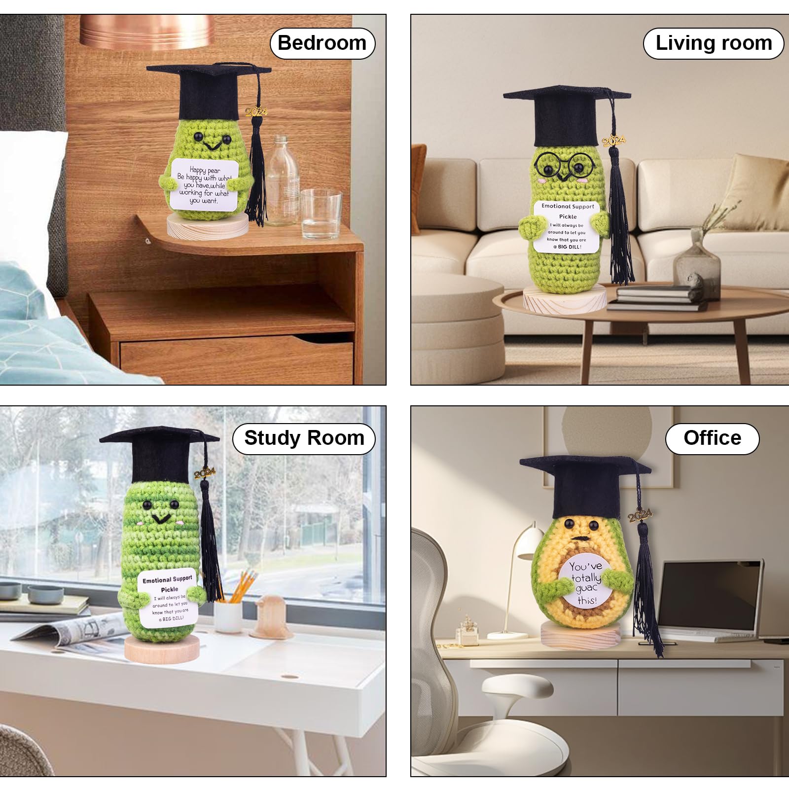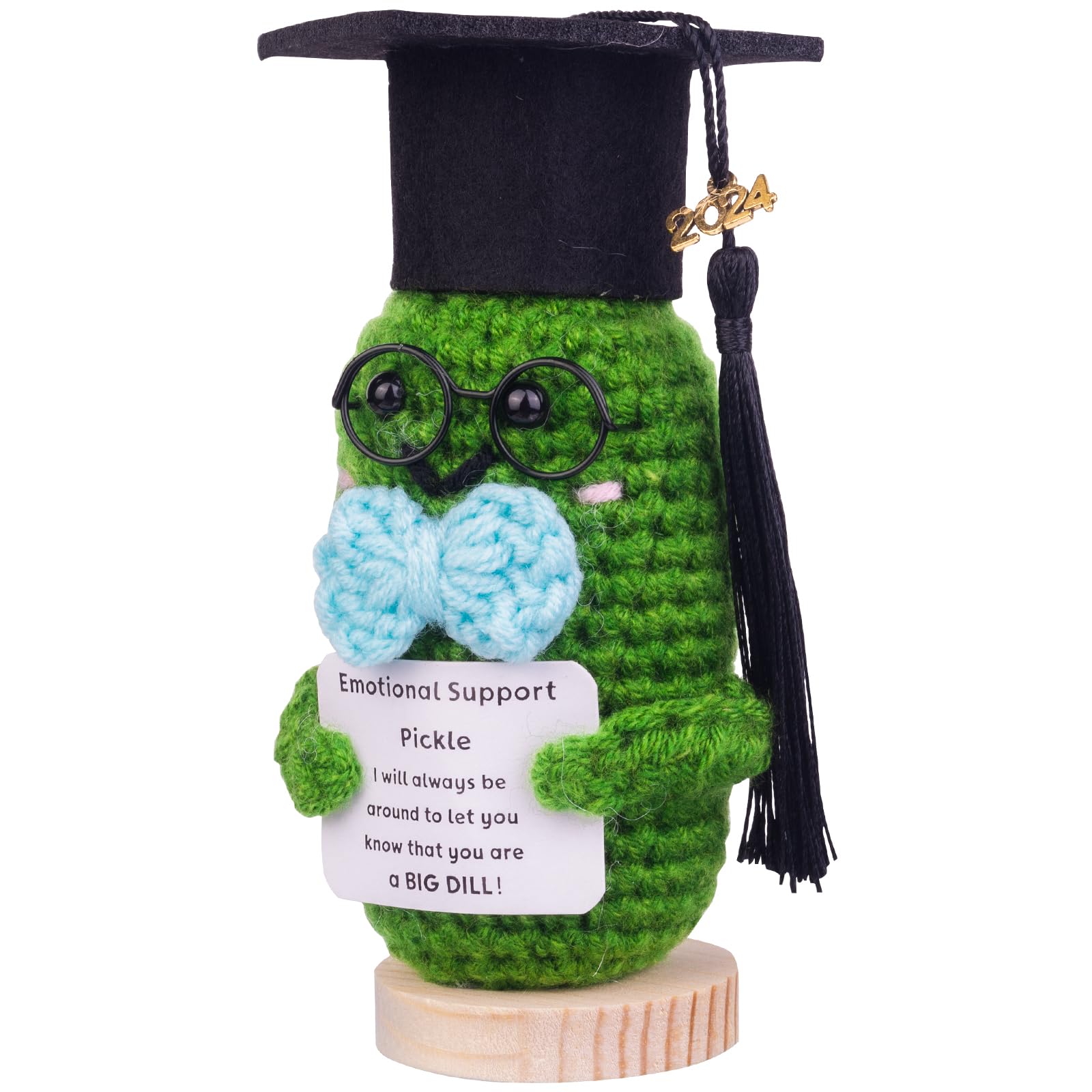 - Q: What makes the CoFuBcad cucumber doll a unique graduation gift? A: The CoFuBcad cucumber doll stands out as a unique graduation gift due to its cute knitted design, complete with a doctoral hat, and the inclusion of encouragement cards. This emotional support toy not only serves as a decorative item but also provides positive reinforcement during a significant life milestone.