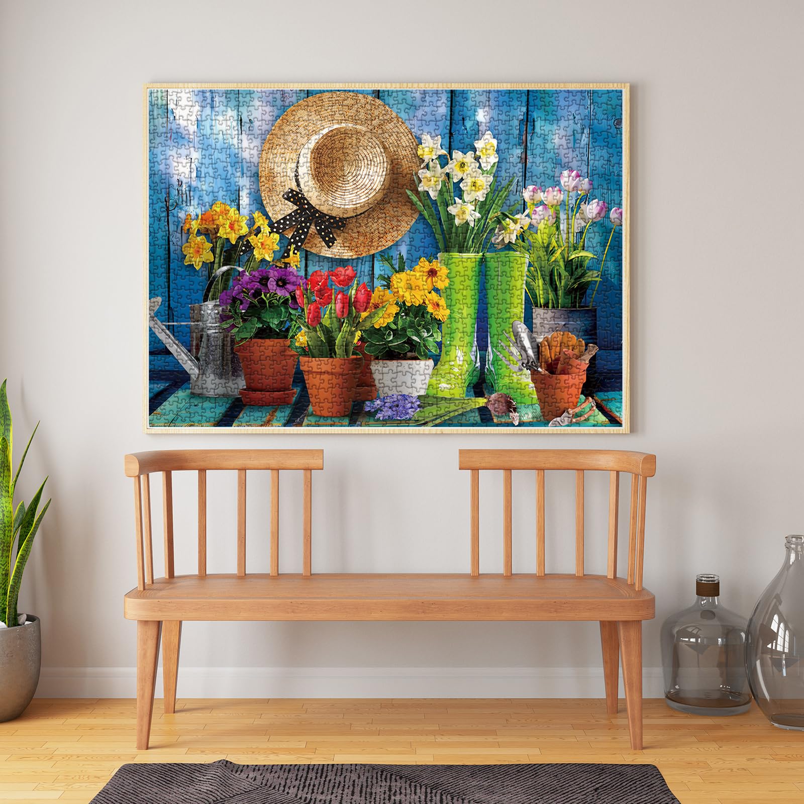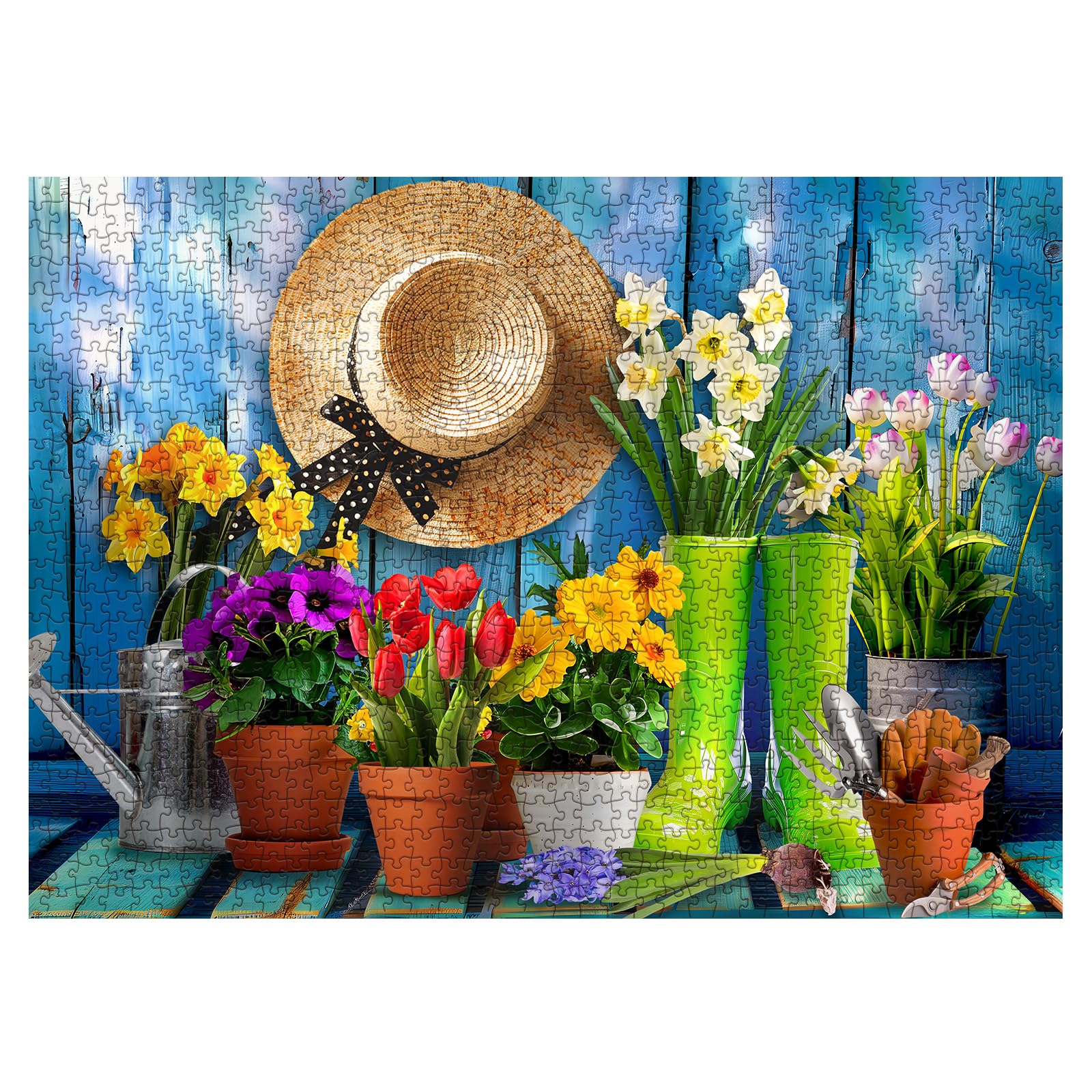 Colorful Flowers Puzzles For Adults 1000 Pieces, Beautiful Plant Pot Garden Floral Jigsaw Puzzles, Spring Tools Tulip Daisy Puzzle