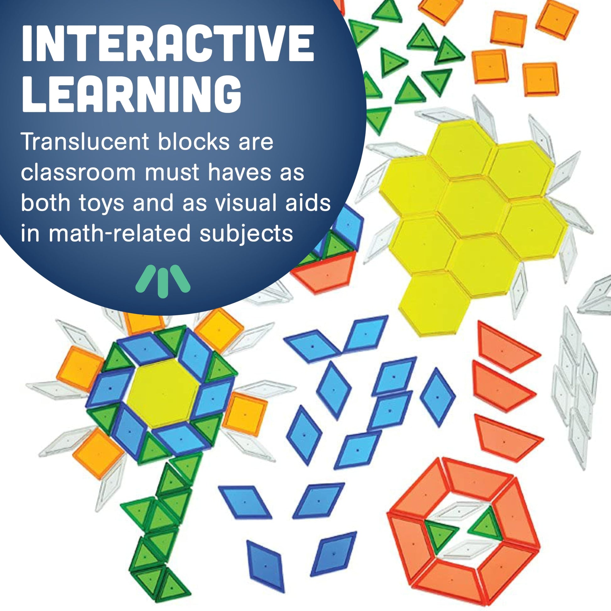 Constructive Playthings Translucent Pattern Blocks, Light Table Manipulatives, Stem Toys, Sensory Play, Create, Build And Design, Color Exploration, Set Of 147 Blocks, Toys For Kids 3 Years And Up