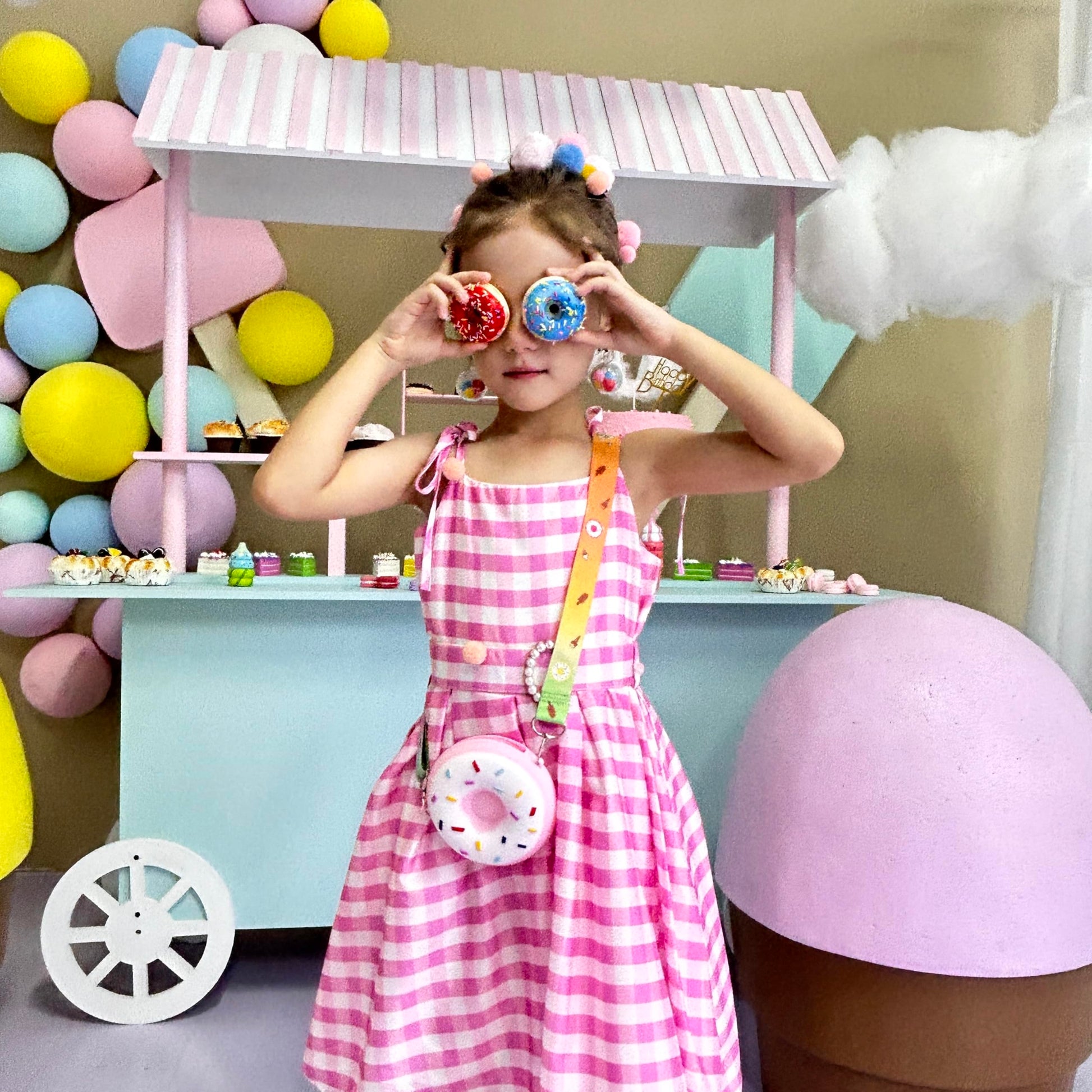 CONTRACONTACT Set of 4 Sweet Kids Purse Donut bags in pink in individual gift boxes, Donuts Purses as Kids Toys & first little h
