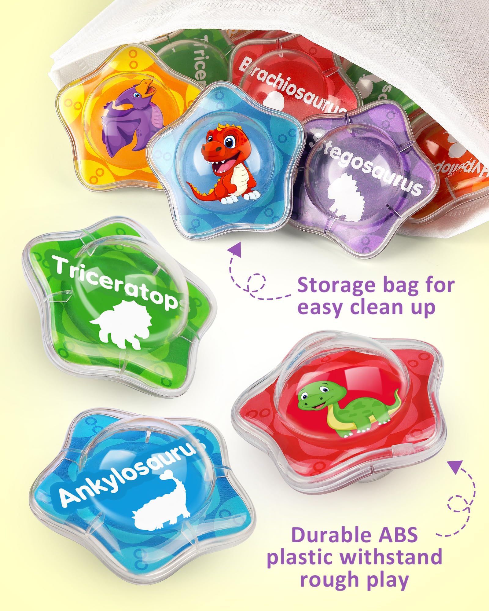 - Q: How do these toys help with my child's learning? A: Each dinosaur toy features colorful words and pictures that can stimulate your child's interest in learning. They help toddlers recognize words and understand concepts related to dinosaurs in a fun and engaging way during bath time.