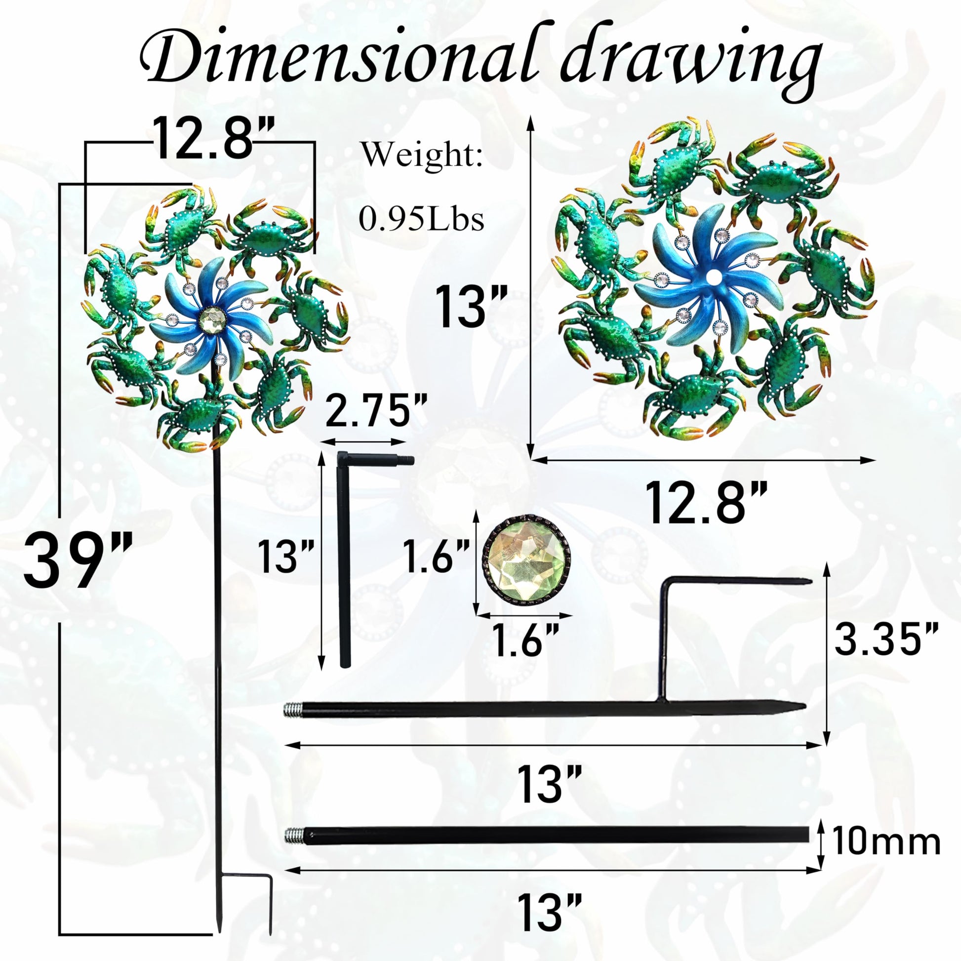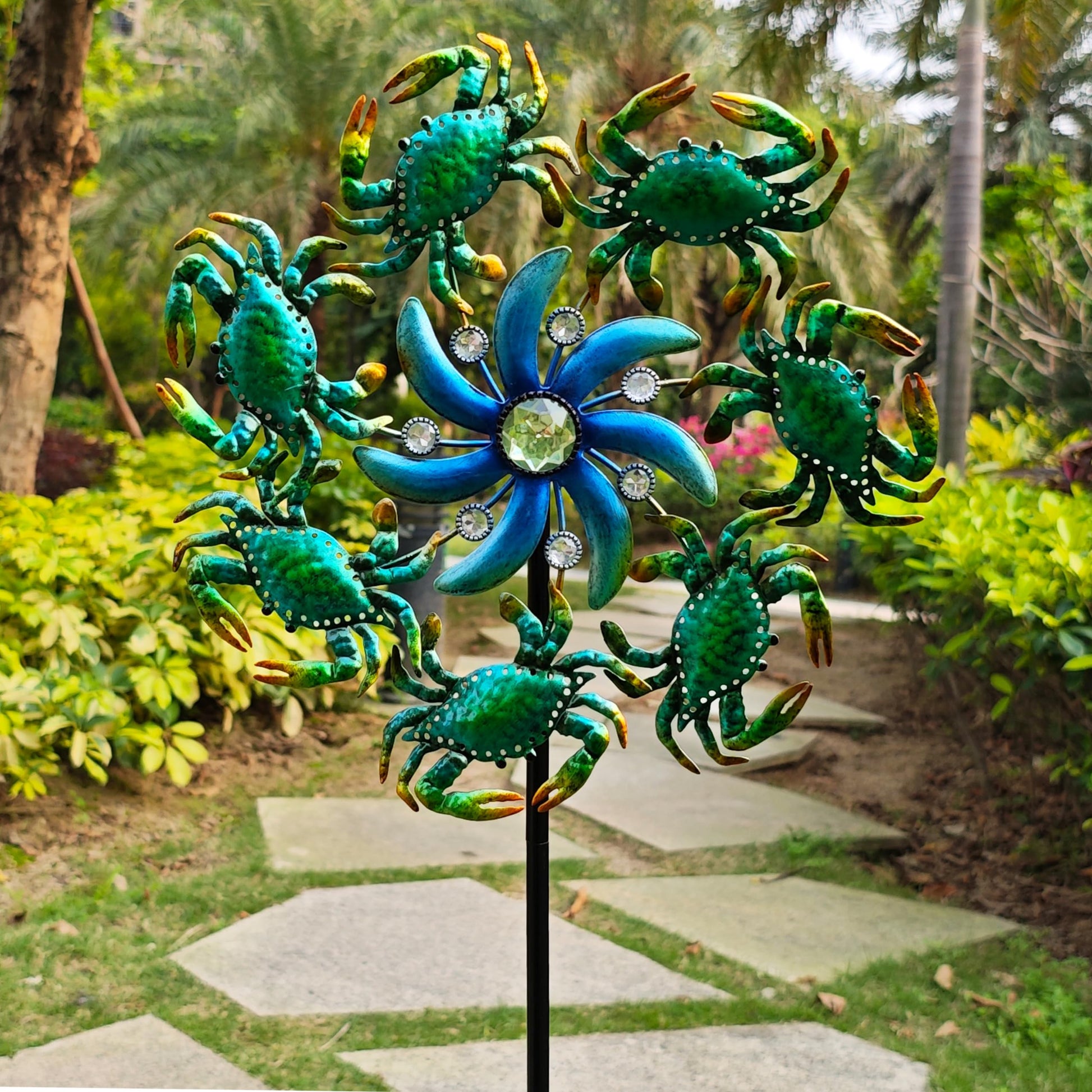 This durable colorful crab spinner is made of metal to withstand the harshest wind conditions and last throughout all seasons. The metal crab capture and reflect the light as they spin, giving a beautiful blend of moving colors to any outdoor space. The spinner is the perfect portable decor for lining your driveway, walkways or planting beds to be easily seen and admired by passers-by , Perfect for decorating the garden, yard, lawn and ocean garden lovers!