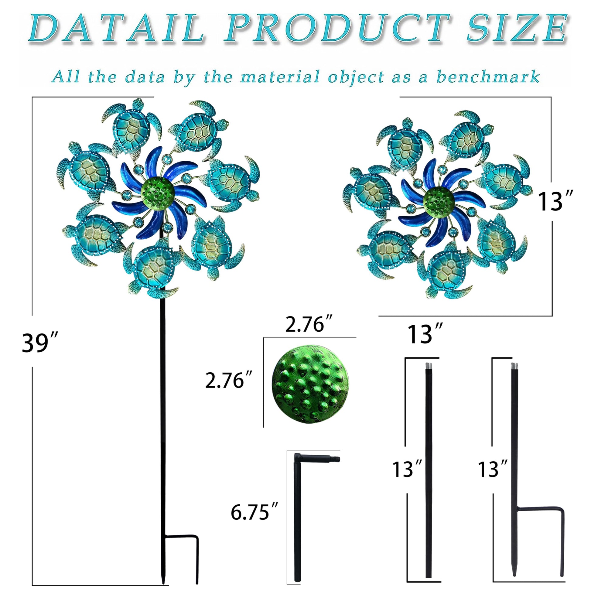 Coozzyhour 39'' Sea Turtle Wind Spinners Garden Stake-Ocean Theme Outdoor Decorations- Metal Stake Yard Spinner-Wind Sculpture Y