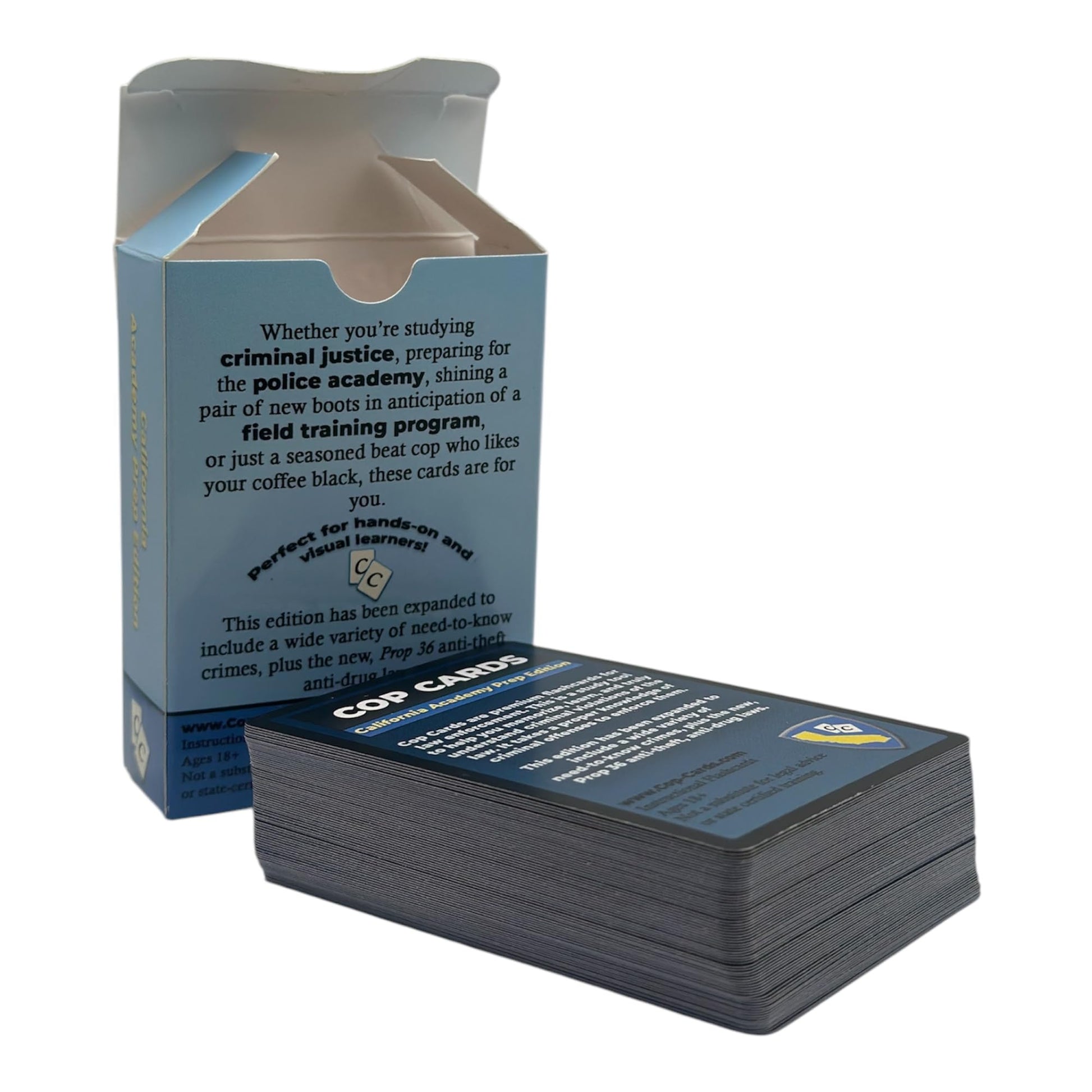 Product Description: Cop Cards are not your average handmade study aids. Made from high-quality materials akin to traditional trading cards, each card in this set is a perfect blend of durability and functionality. With over 70 carefully curated flashcards, the Academy Prep Edition is tailored for both academy students and professionals in the field. While these flashcards are not a substitute for state-certified training, they serve as an excellent supplementary resource for law enforcement learners.