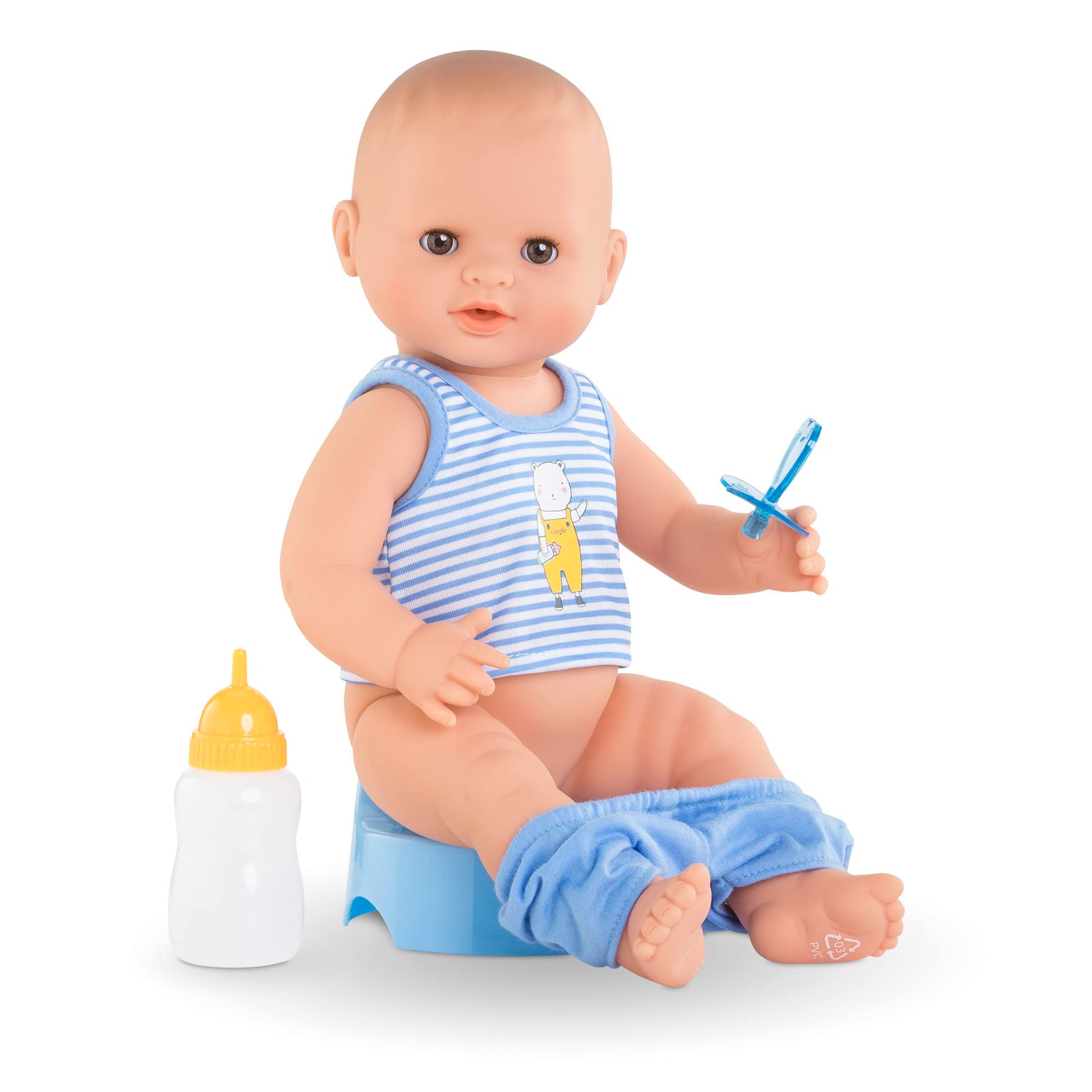 Corolle Drink and Wet Bath Baby Paul - 14 Boy Baby Doll with 3 Accessories - Bottle, Potty, and Pacifier - Really Drinks and