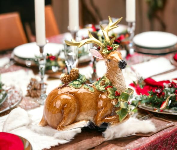 - Q: What colors are available for the Emerald Holiday Reindeer Figurine? A: The figurine features a vibrant blend of green, red, gold, and brown, making it a festive addition to your holiday décor.