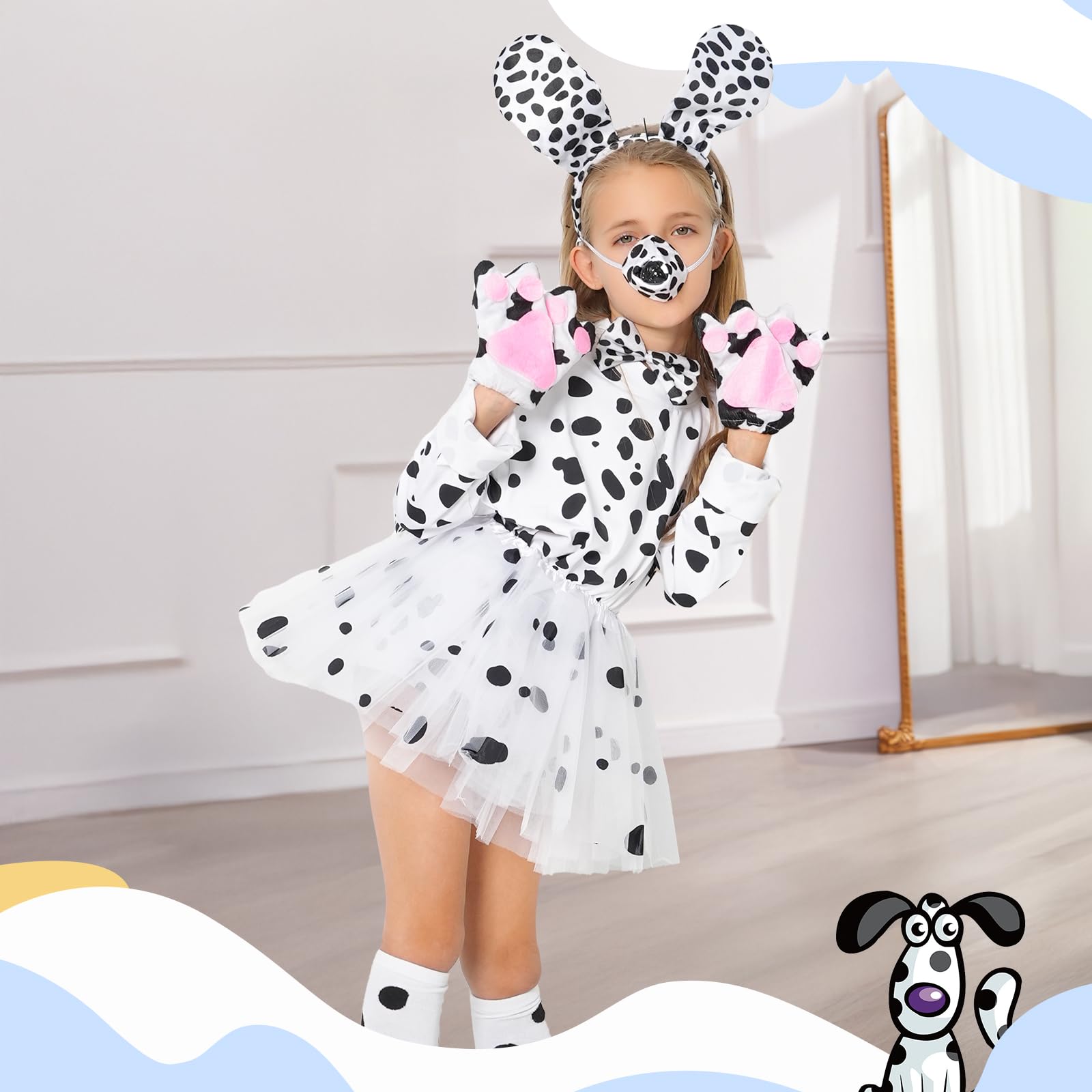 101 Dalmatian Costumes for Kids, Girls Shirt Tutu Outfit Ears Headband Socks Accessories for 101st Day Of School