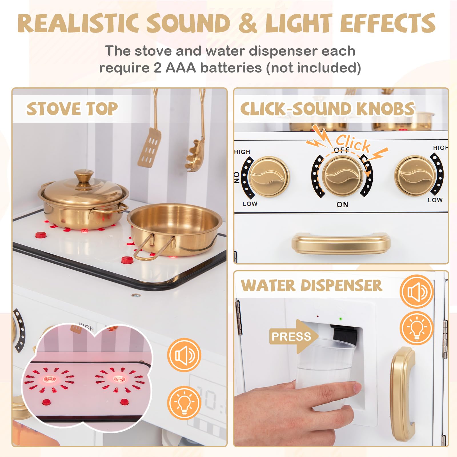 Costzon Play Kitchen For Kids, Wooden Toy Kitchen Set With Stoves, Microwave, Blackboard, Water Dispenser, Cooking Accessories,
