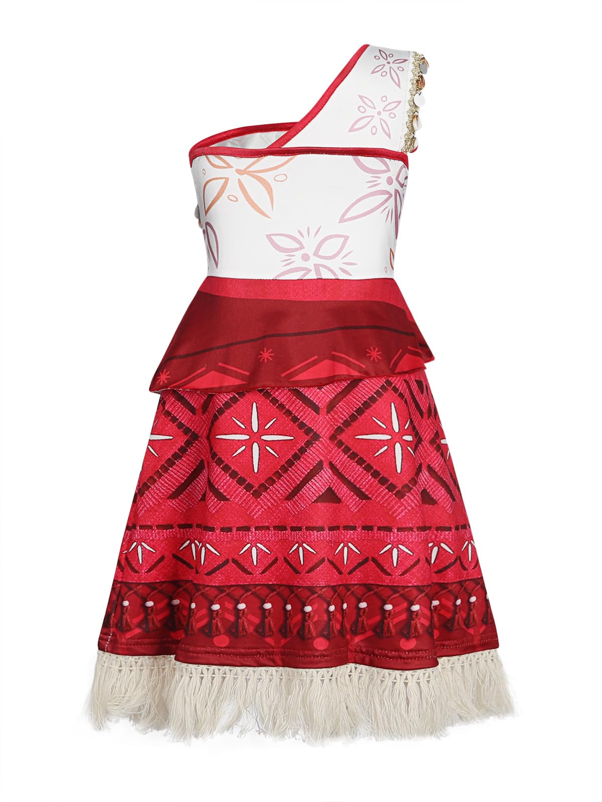 Dress up in an all-new adventure outfit, just like female lead in the movie wears, to embark on your own wondeful sea adventure journey. Best gift for the daughter/niece/granddaughter of a movie fan. | Design: This is a princess dresses, not two-piece dress. Sleeve edge and bodice chest are embossed with sequins and shell decorations, skirt with tassel fringe hem. Unique one shoulder pullover style ocean adventure outfit, is easy take on and off. | Feature: Cartoon character costume dress uses 3D printing technology, realistic patterns and close resemblance to animated character designs, bright and vibrant, is not easily deformed or discolored even after multiple washes. | Occasion: Girl's adventure princess dress up is great for birthday party, role play, pretend play, dress up, Christmas, Halloween costumes, cosplay, playwear, photography. Child will love it, she put it on and wouldn't take it off. | Size Instruction: 5 sizes for choose, suitable for 3-10 years old girls. A set including: dress, ocean pendant necklace, shell anklet, ear clips. Hand washing is recommended to prevent damage to the decorations on clothes.