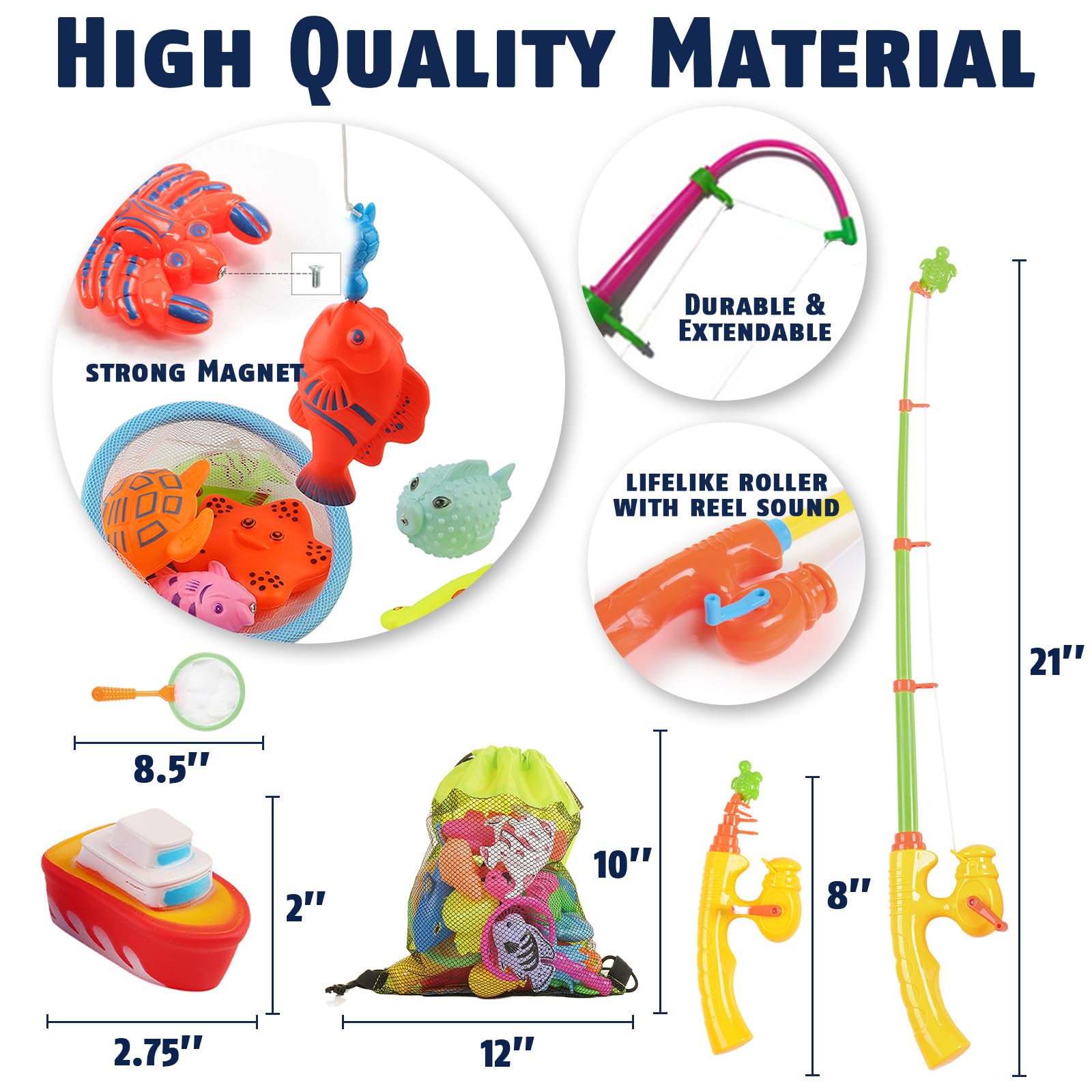 Cozybomb Magnetic Fishing Game For Kids - Learning Education Fishin Bath Toys For Bathtub Pool Bath Time Fun With Fun Toys