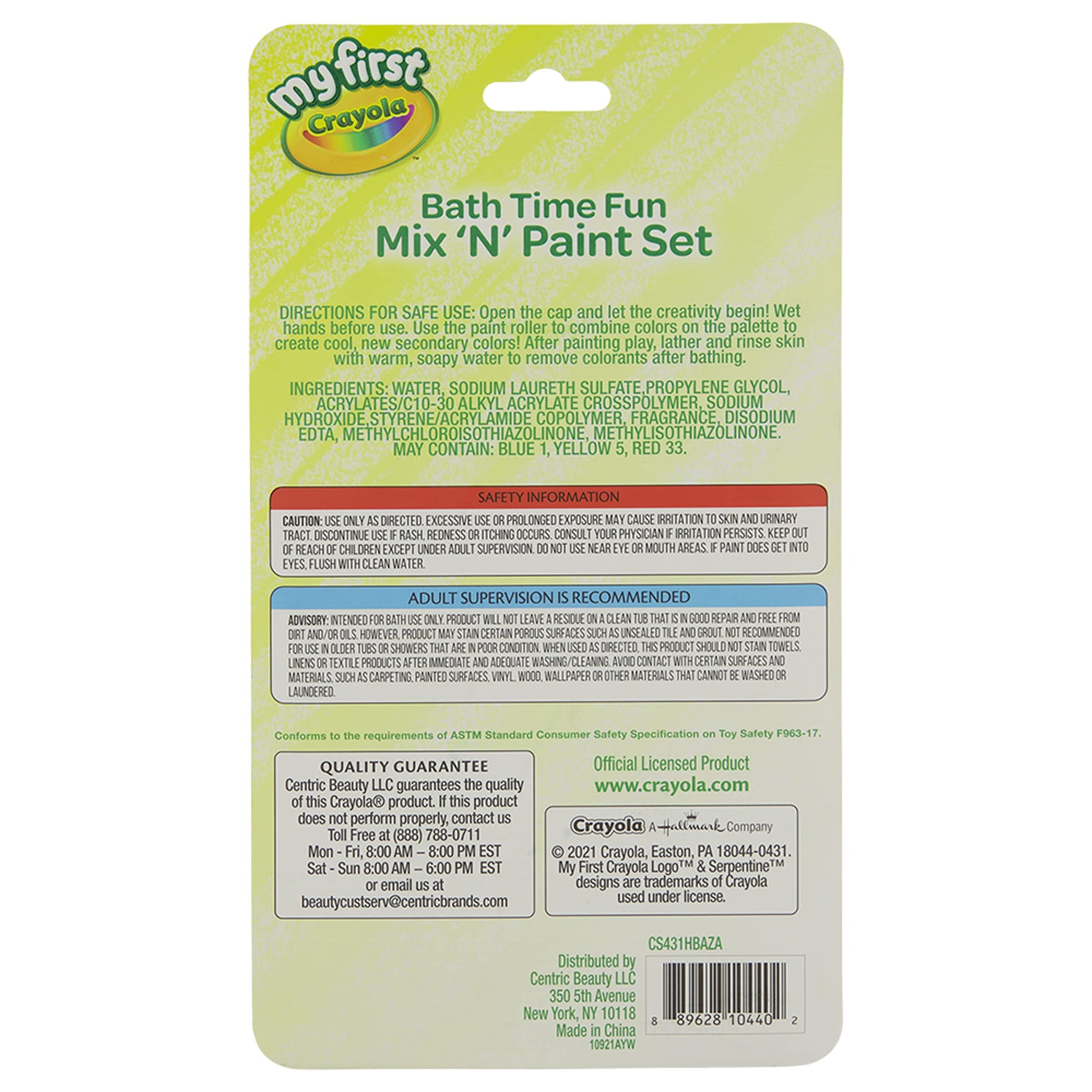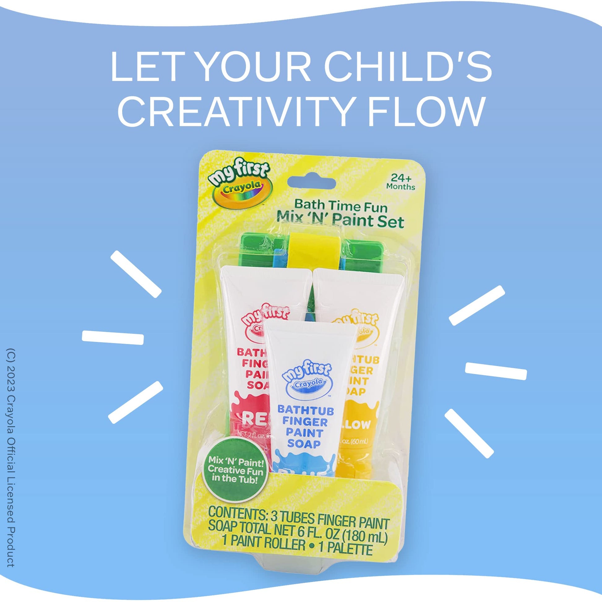 BATHTUB PAINT FOR KIDS: Bath time just got a lot more colorful with this set of Crayola finger paint for kids! Each pack comes with red, blue, and yellow paint (2 fl. oz. each) for a fun variety of colorful options, plus a paint roller and palette for creative combinations. For ages 2 and up. | HOW TO USE: Open the cap and let the creativity begin! Wet your child