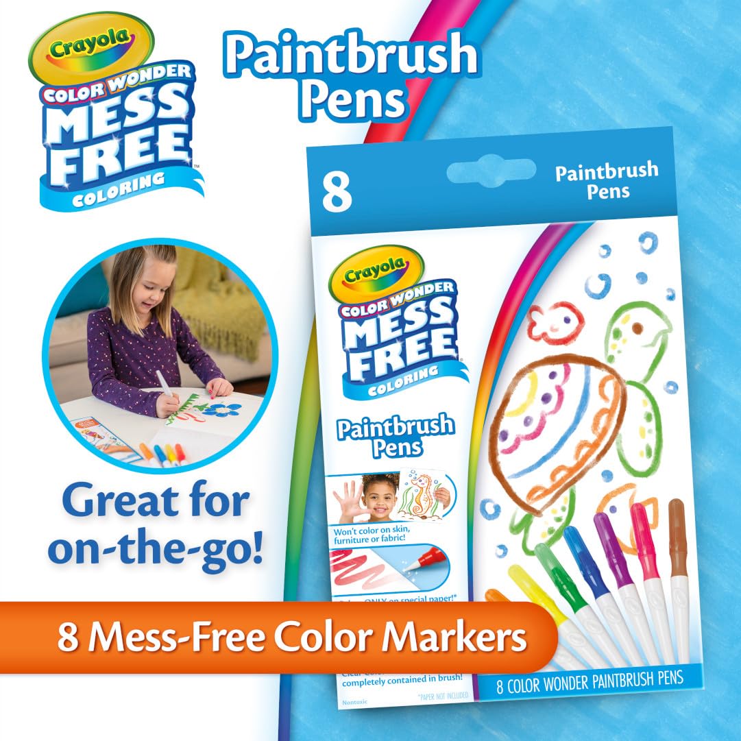 - Q: What are Crayola Color Wonder Paintbrush Pens? A: Crayola Color Wonder Paintbrush Pens are a set of 8 specially formulated paintbrush pens designed for mess-free painting on Color Wonder paper. They allow kids to explore their creativity without the worry of staining skin or clothing.