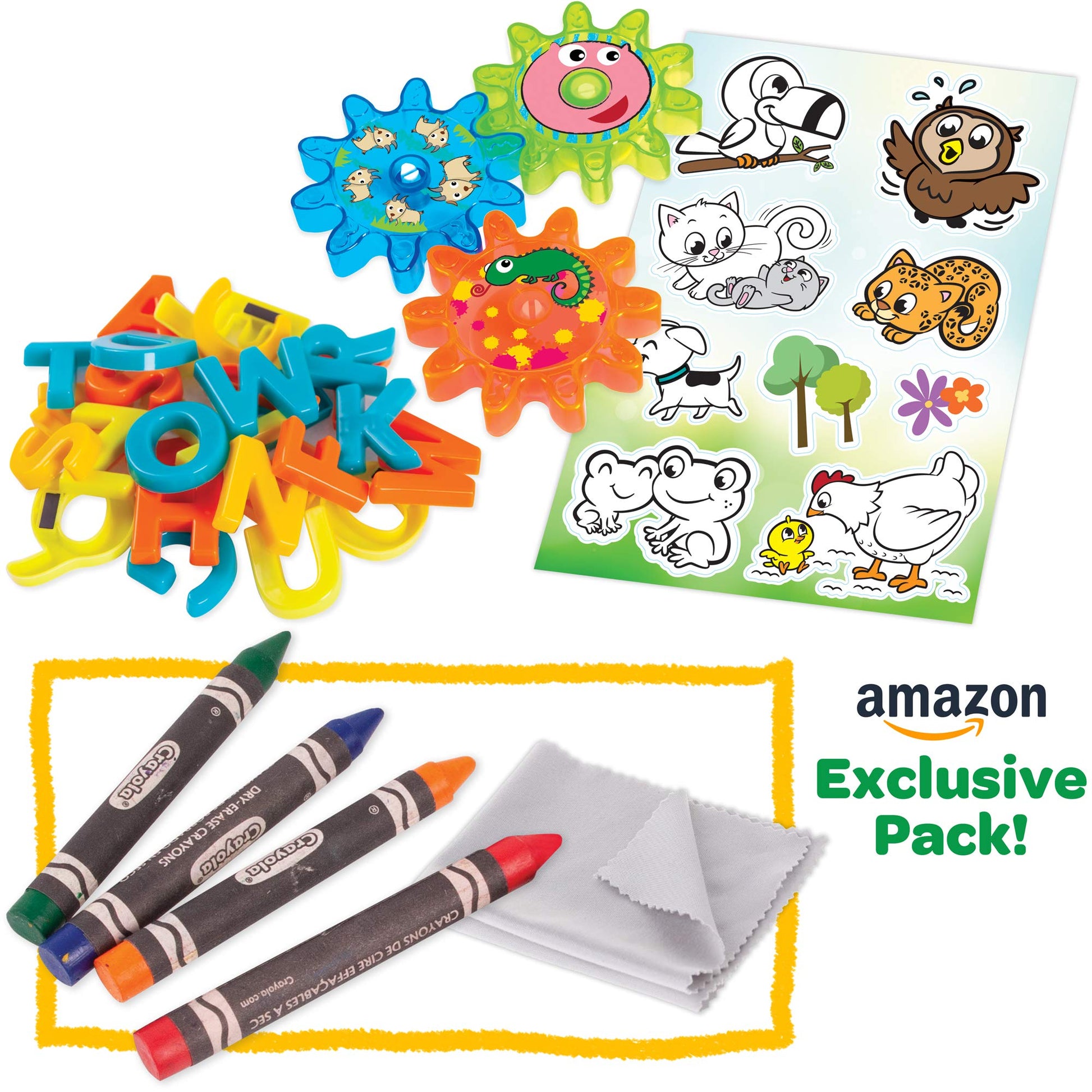 - Q: Does the easel come with any additional accessories? A: Yes, the Crayola easel comes with 77 colorful magnetic letters, 3 magnetic gears, a sticker sheet, and 4 dry-erase crayons, providing everything children need to start creating right away.