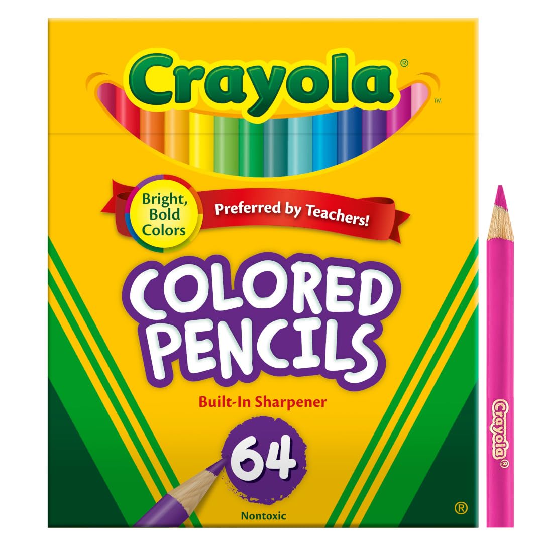 Transform creative ideas into colorful art with the Crayola Mini Colored Pencils Set. This pack features 64 Assorted Colored Pencils that inspire kids to unleash their inner artist. Each 3-inch pencil comes pre-sharpened and features a thick, soft core that won't break easily under pressure - making them great for school projects, coloring books, and kids crafts. The compact package includes a handy, built-in sharpener that makes this the perfect set for creativity on the go. Plus, Crayola Colored Pencils are created from reforested wood, and for every tree used in the manufacturing of Crayola Colored Pencils, a new tree is planted. These non-toxic coloring tools are ideal for ages 4 and older.