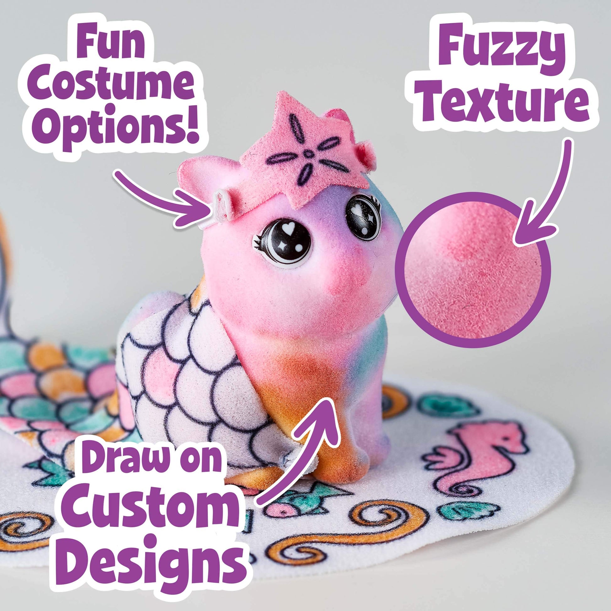Make believe to the max with Crayola Scribble Scrubbie Pets Costumes! Now there are fun costume options, allowing kids to dress up their Scribble Scrubbie Pets for new adventures. After coloring your Scribble Scrubbie Pet get her ready for some undersea cosplay with this adorable Mermaid get-up. Additional costume expansion packs are sold separately. The perfect gift for girls and boys who love magical and mysterious aquatic creatures! With Crayola Scribble Scrubbie Pets kids can color and customize miniature pets, then wash them and start again. This set features Priscilla the Cat, 1 Fabric Mermaid Tail, 1 Fabric Seashell Headband, and 1 Fabric Display Mat.