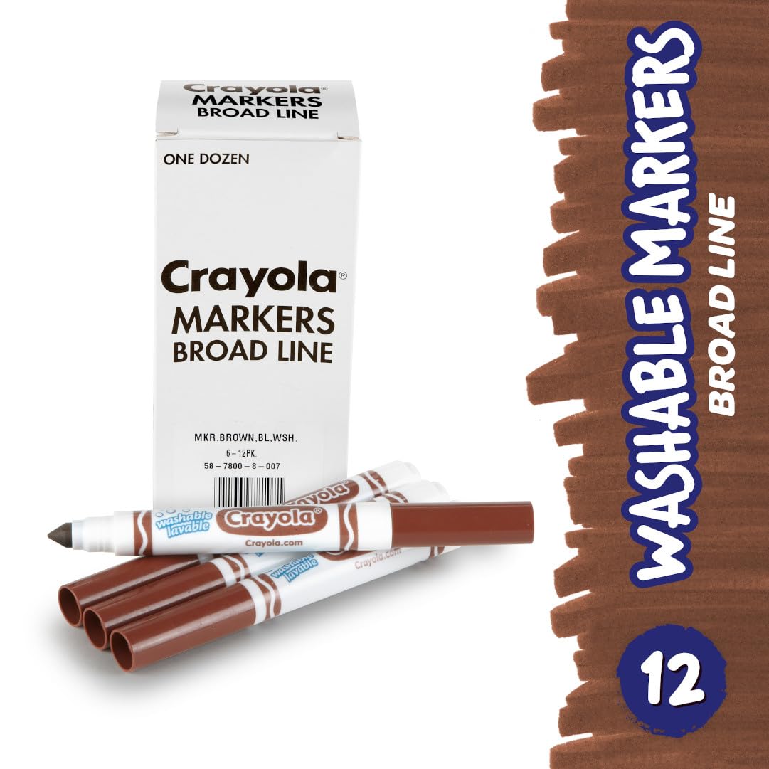 Crayola Washable Markers - Brown (12Ct), Kids Broad Line Markers, Bulk Markers For Classrooms & Teachers