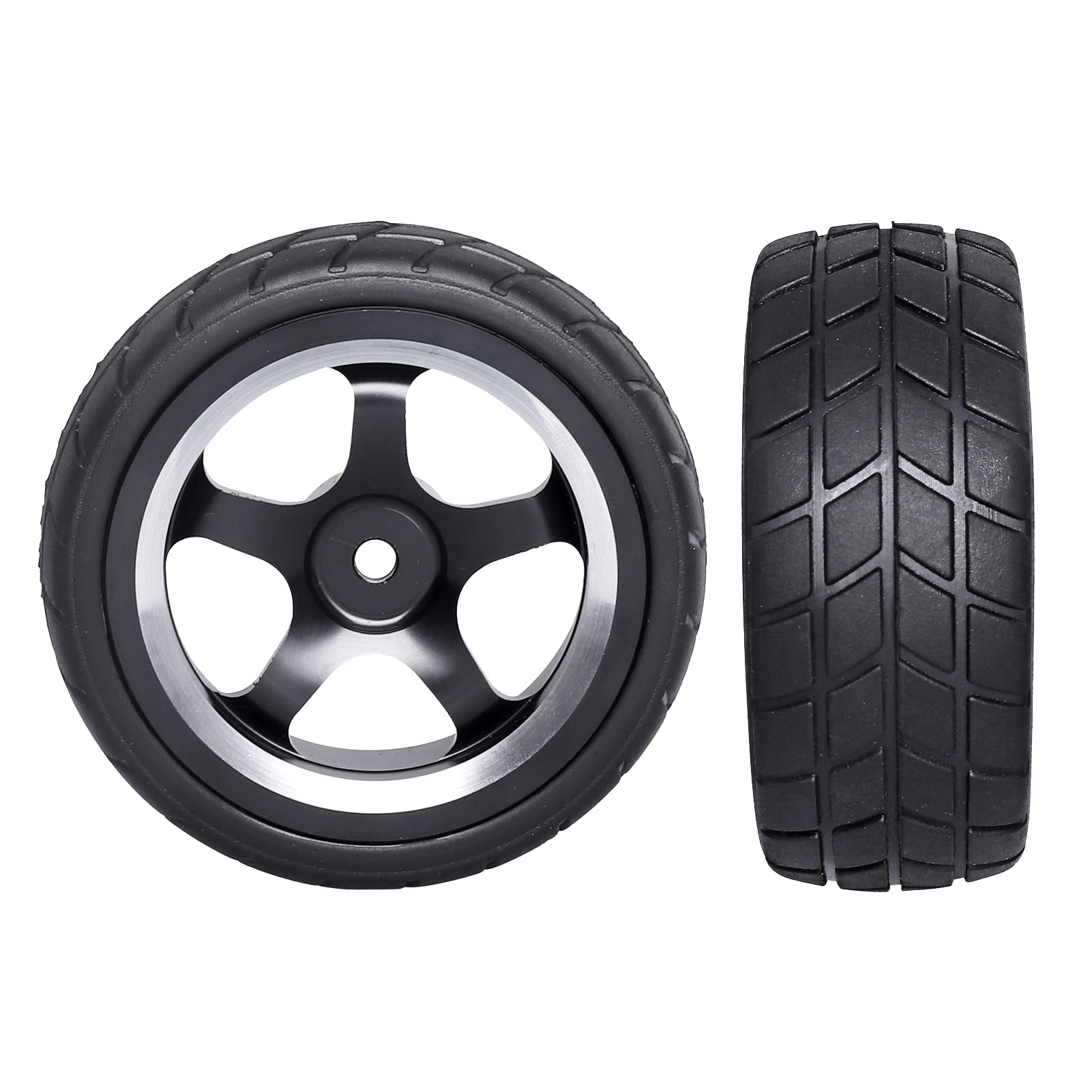 • Q: What are the dimensions of these tires and wheels? A: The tire outer diameter is 2.55 inches (65mm), with an inner diameter of 1.81 inches (46mm), a wheel width of 1.02 inches (26mm), a wheel hex size of 12mm, and an axle hole size of 4mm.