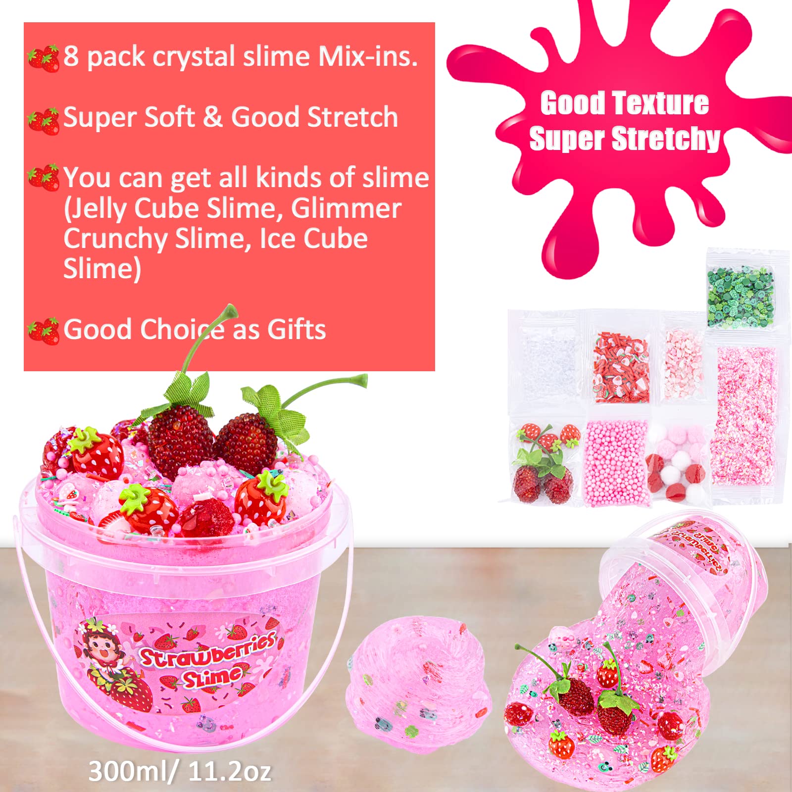 Crystal Slime, Pink Strawberry Jelly Cube Glimmer Crunchy Clear Slime With 8 Add-Ins, Idea Stress Relief Toy, Kids Party Favor, Birthday Easter Christmas New Year Gift For Girls & Boys Age 6 7 8 9 10+