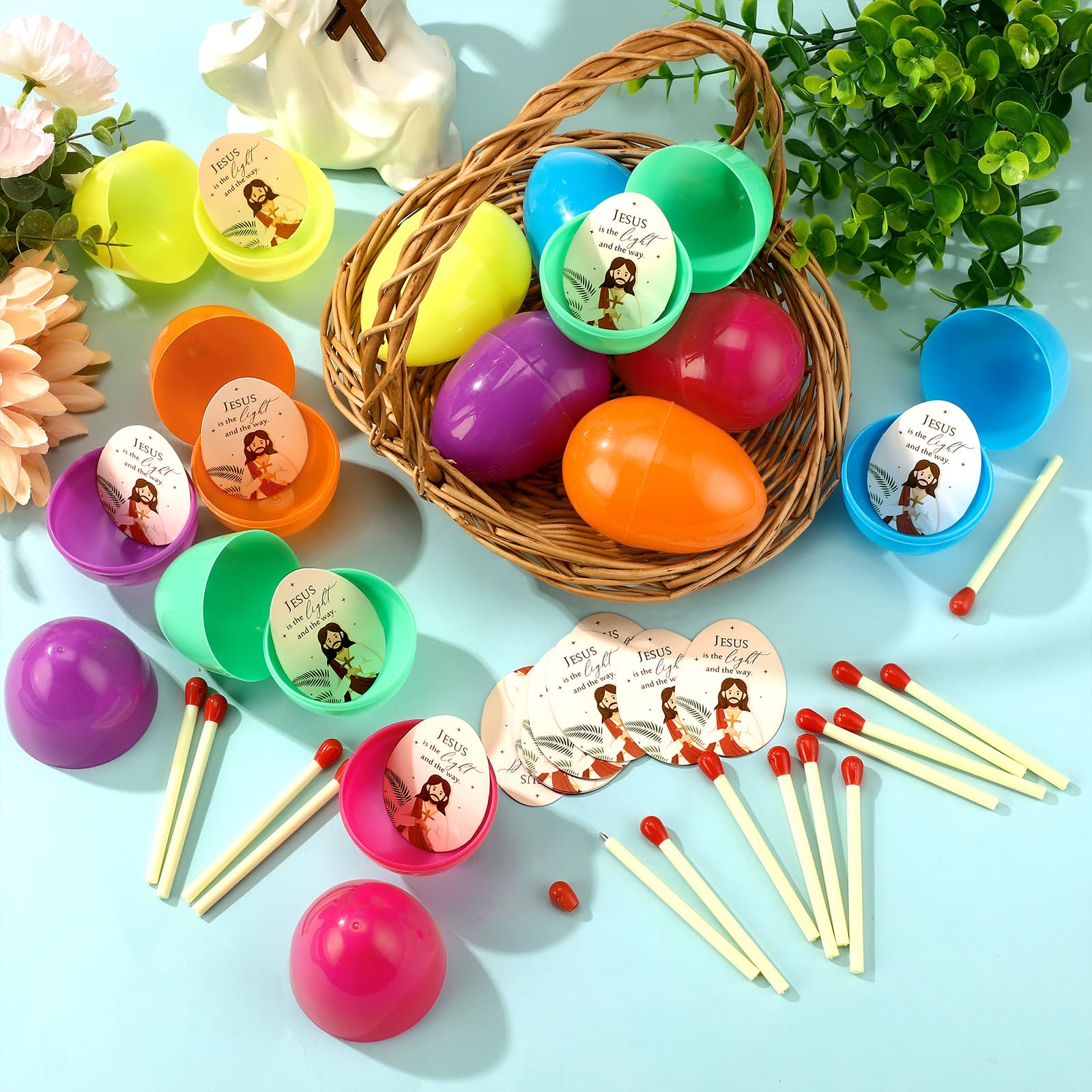 Ctosree 24 Sets 3.35 Inch Christian Easter Eggs Filler Stuffer with Match Shaped Ballpoint Pens and Jesus Is The Light Gift Card