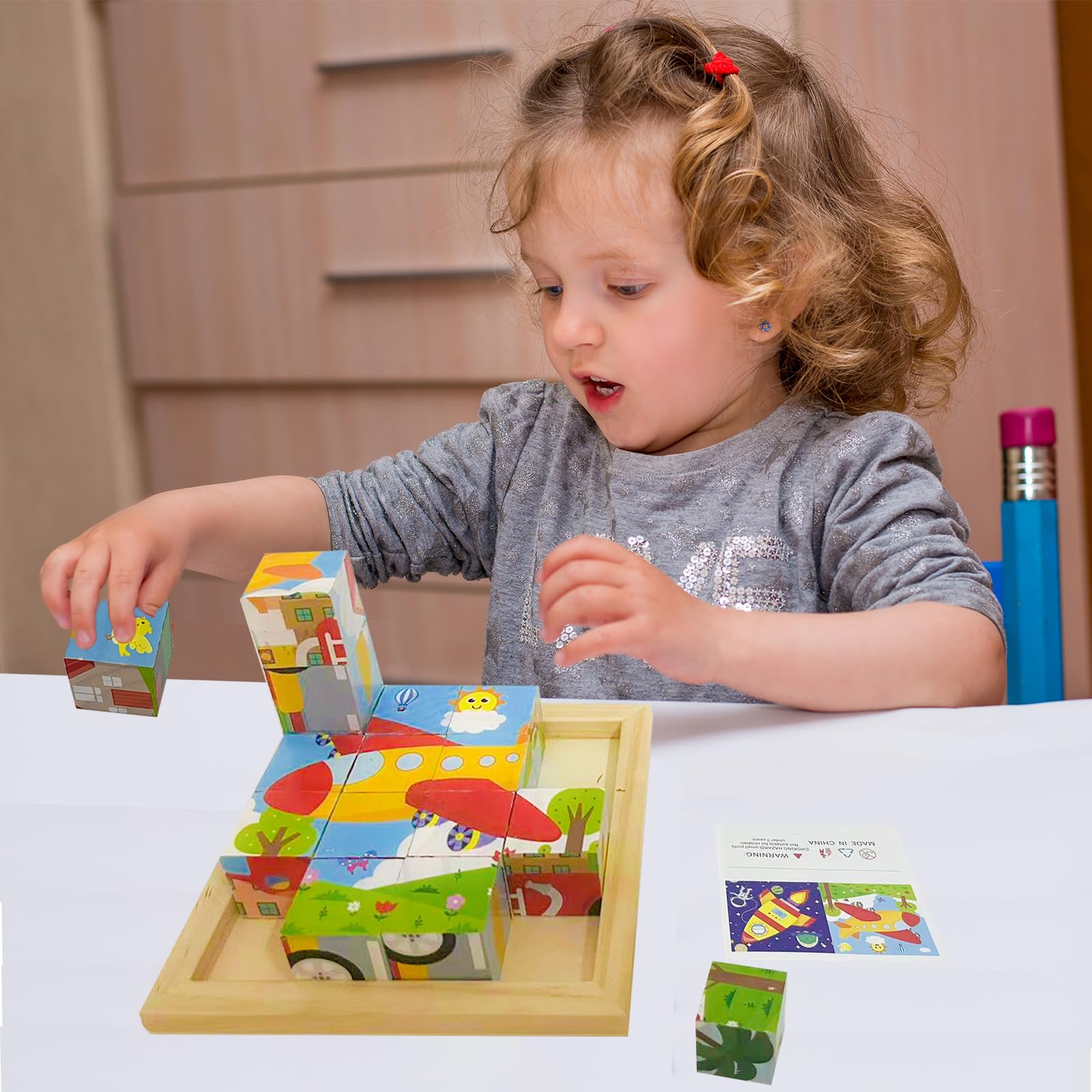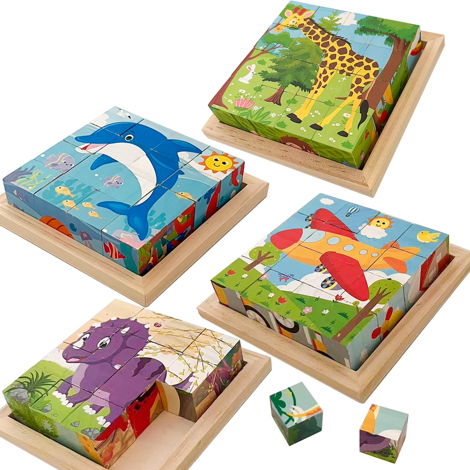 Cube Puzzle With Storage Tray,Toddler Kids Puzzles Ages 3 4 5 6,Educational Learning Montessori Toys For 3 4 5 Year Old,Puzzles