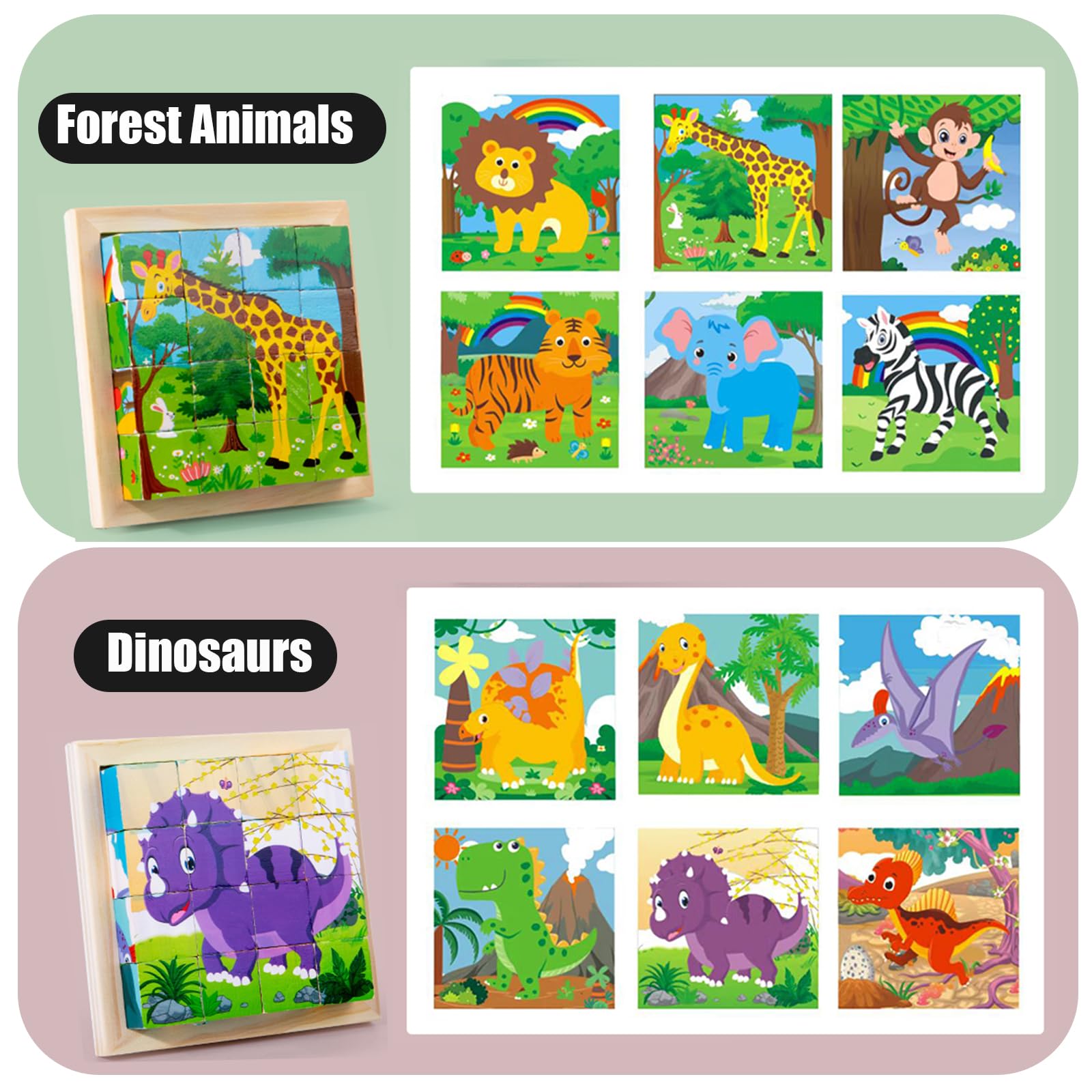 - Q: What themes are included in the puzzle designs? A: This puzzle set features 4 unique themes: transportation, marine animals, forest animals, and dinosaurs, providing a variety of engaging designs for children to explore.
