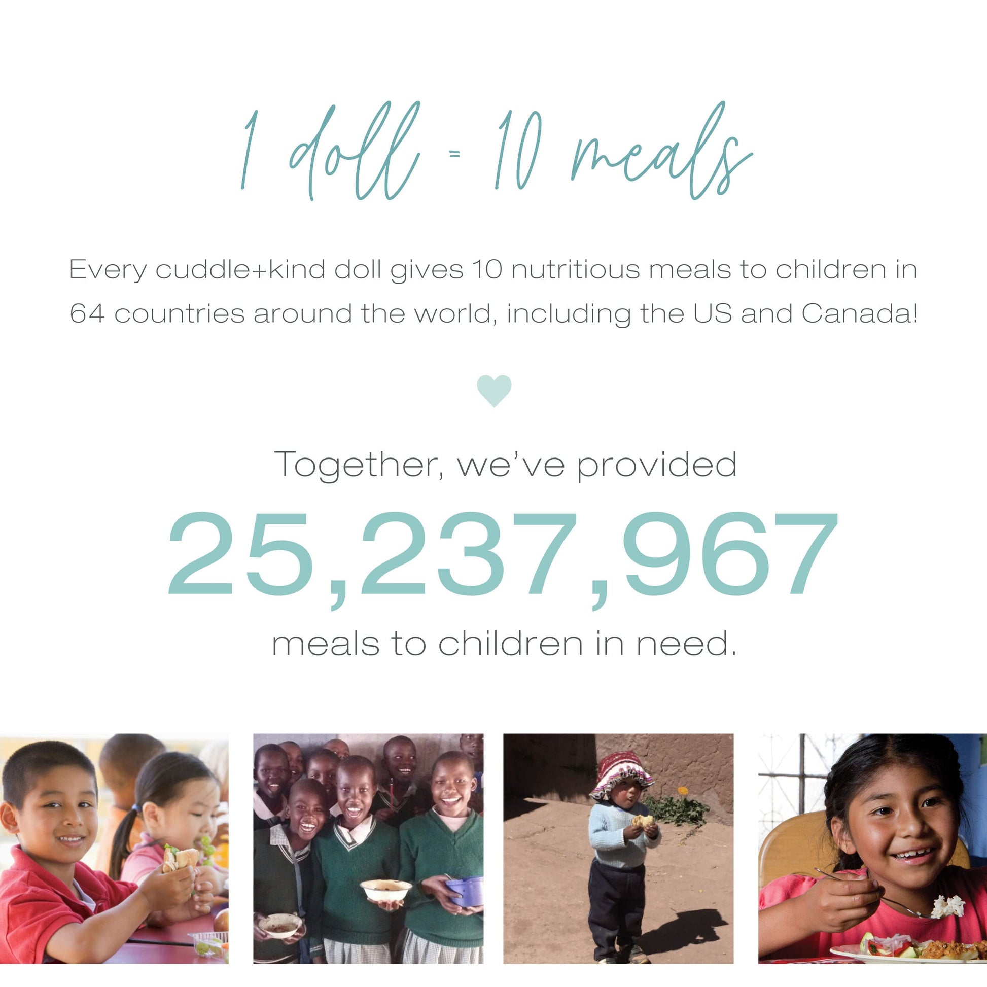 - Q: What is the significance of purchasing this doll in terms of meals? A: For every cuddle + kind Avery The Lamb doll purchased, 10 meals are provided to children in need, making it a meaningful gift that contributes to a greater cause.