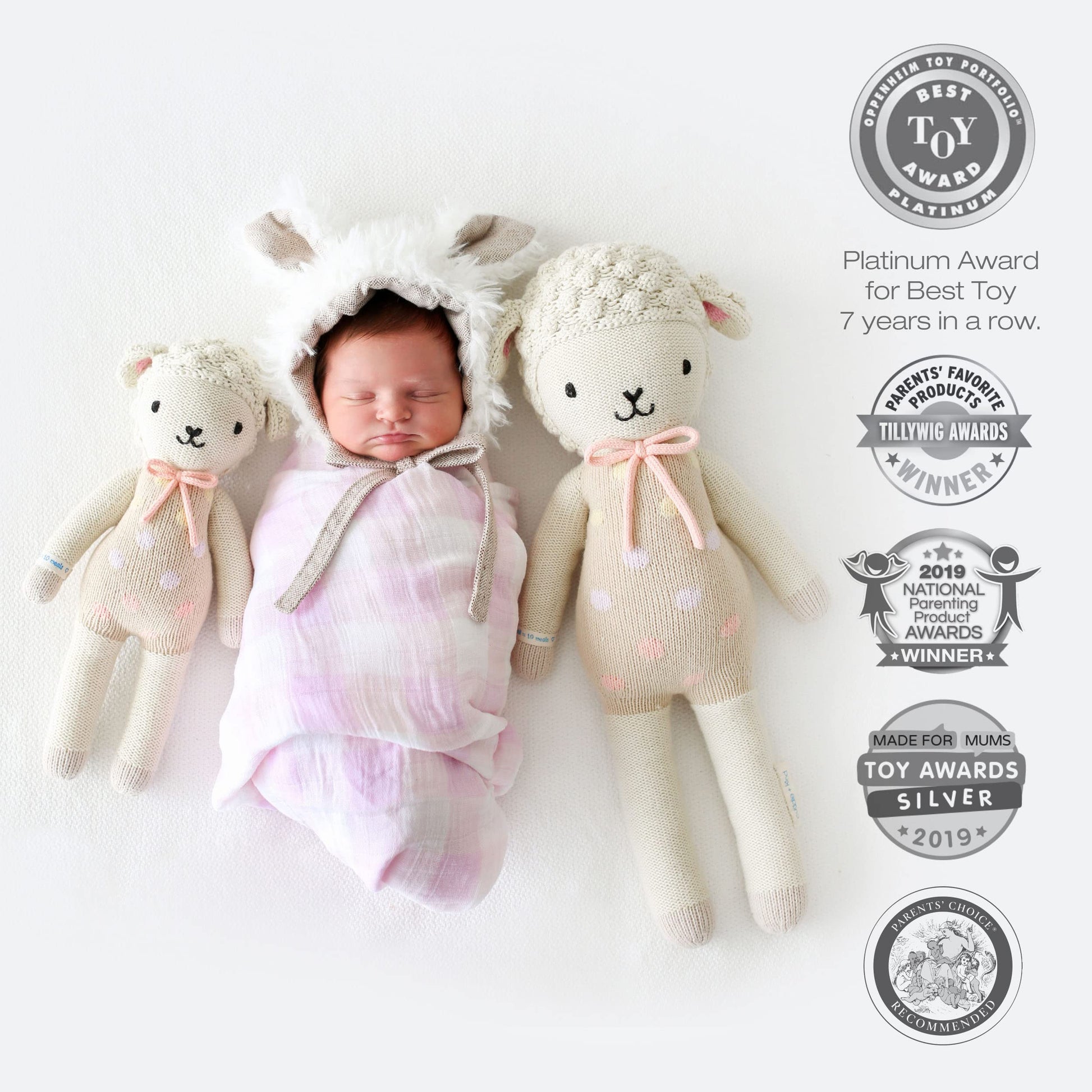 Cuddle + Kind Pastel Lucy The Lamb Little 13'' Hand-Knit Doll - 1 Doll = 10 Meals, Fair Trade, Heirloom Quality, Handcrafted In
