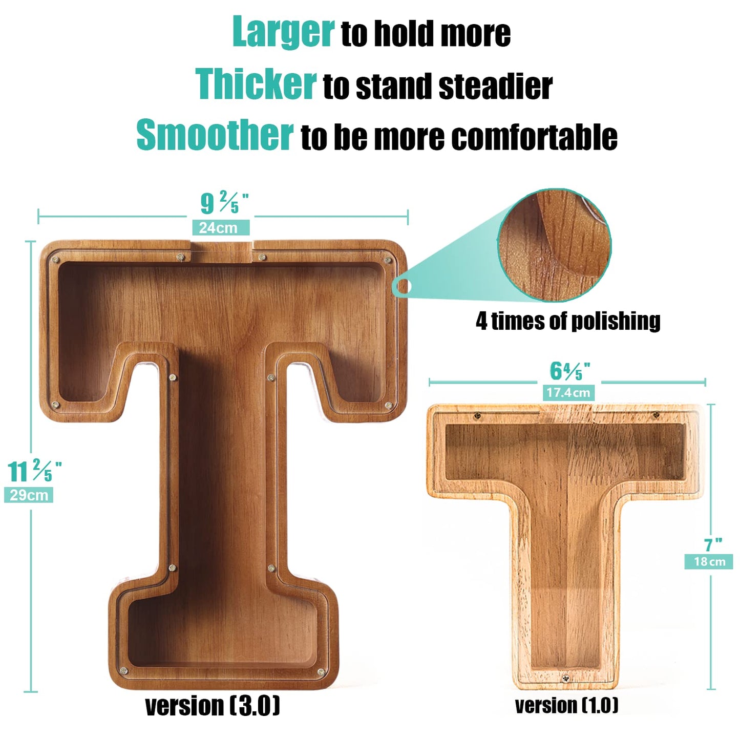 Here It Comes! Our Large And Extra Large Size Letter-Shaped Piggy Bank, Crafted From100% Organic Wood.