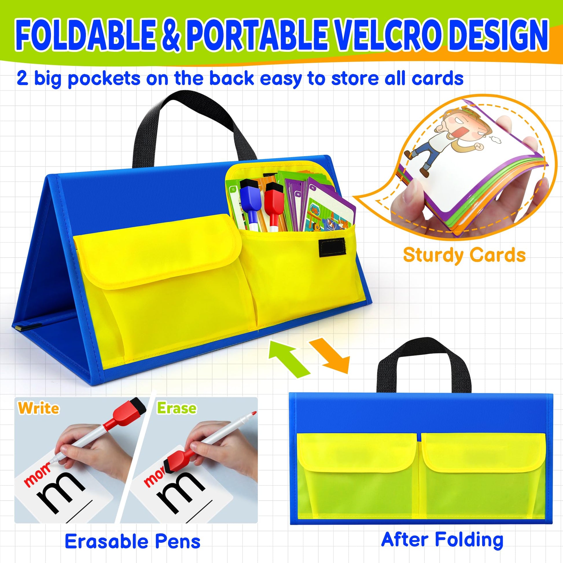 - Q: Is the Pocket Chart easy to store and carry for on-the-go learning? A: Yes, the Pocket Chart is foldable and can be assembled into a tent or hung on the wall. It includes pockets for storing all the cards, making it easy to transport and set up for phonics games anywhere.